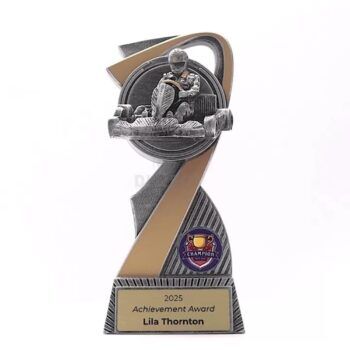 We offer an excellent selection of Go Kart Trophies which are a great rewarding the fastest drivers on the track. Our Go Kart Trophies include free personalisation and are designed and produced locally in Australia – ensuring a fast 3-5 business day turnaround time. We welcome both small and large quantity orders all backed by above and beyond customer service via live chat and email. Every order ships express.