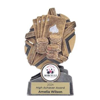 Our range of poker trophies are the perfect way to reward the card shark in your local competition. Available in small or large quantities, our poker trophies can be customised with your organisations logo and engraved with the players details to provide a memento of ‘that one lucky hand’. Give them something to remember that Royal Flush, Straight Flush or Four of a Kind and shop online now for fast delivery to Sydney, Melbourne, Brisbane, Adelaide, Perth and everywhere else in Australia.