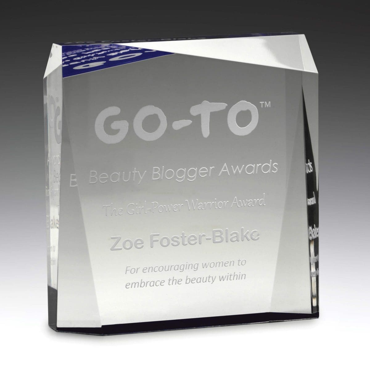 Prism’ Acrylic series offer a distinctive cut design to show off your personalisation requirements. Choose between blue, red or green awards. Supplied in presentation gift box.