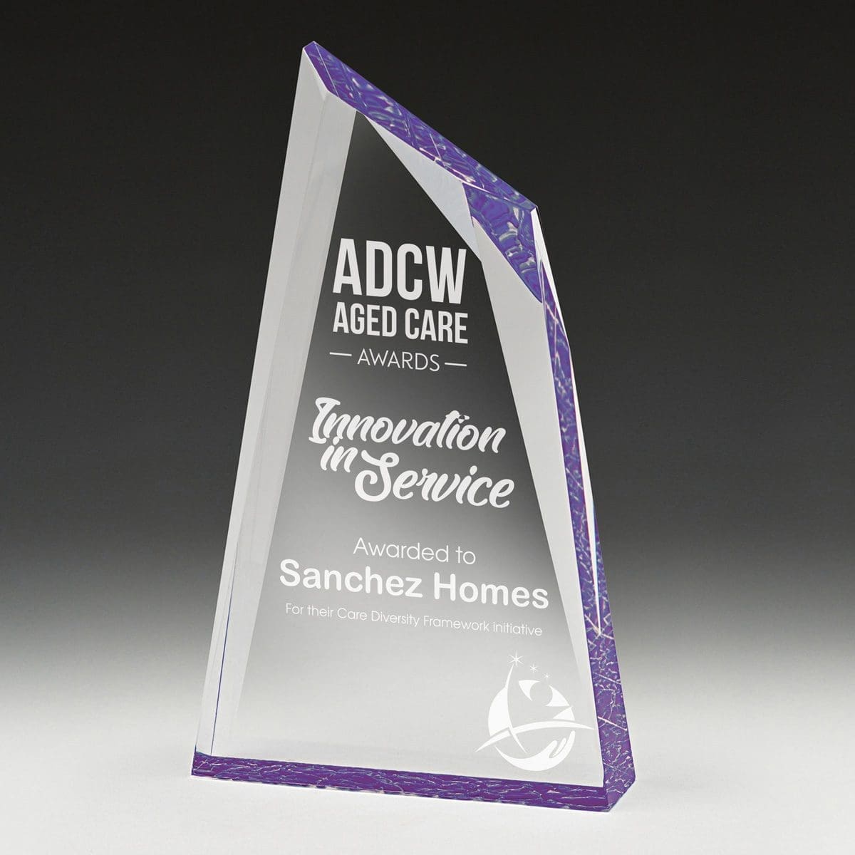The Charger series of acrylic awards available in various colours and sizes – feature distinctive peak shape design symbolic of high achievement.