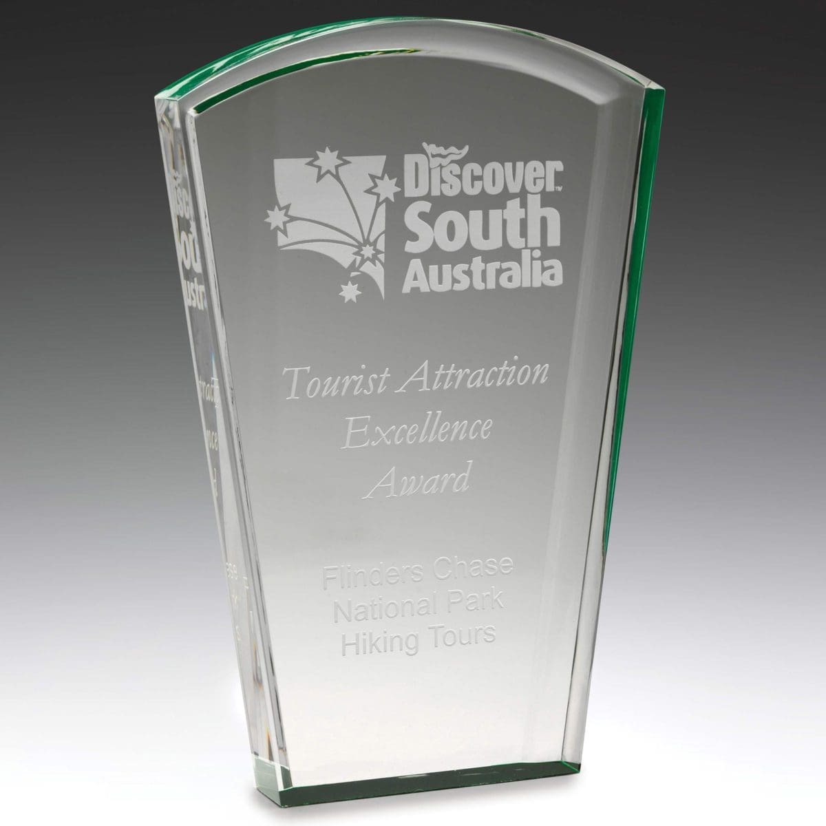 The ‘Solar’ series of acrylic awards present multi-coloured options – a self-standing design ideal for personalisation. Select blue, red or green for your event or presentation. Acrylic supplied in presentation gift box.