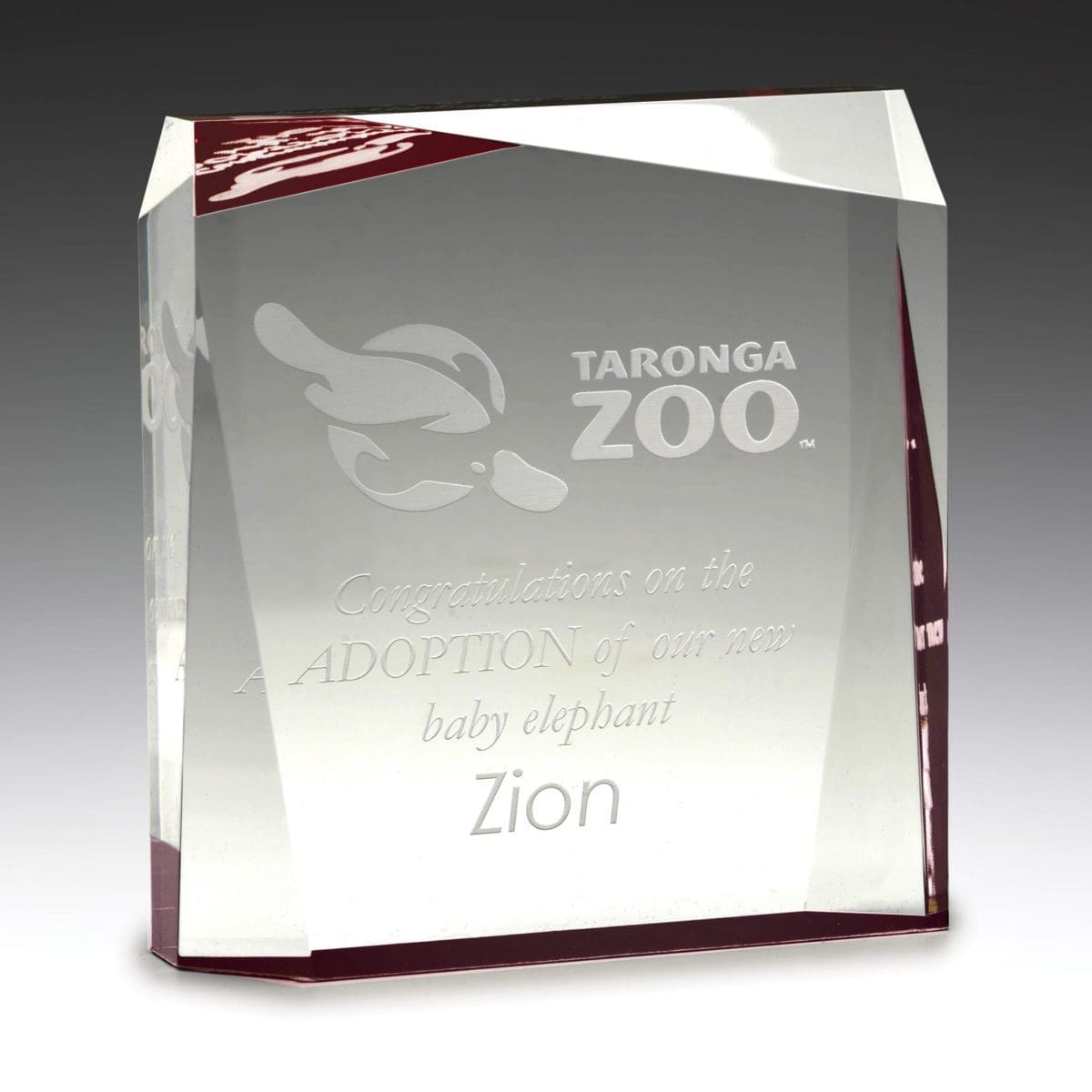 Prism’ Acrylic series offer a distinctive cut design to show off your personalisation requirements. Choose between blue, red or green awards. Supplied in presentation gift box.