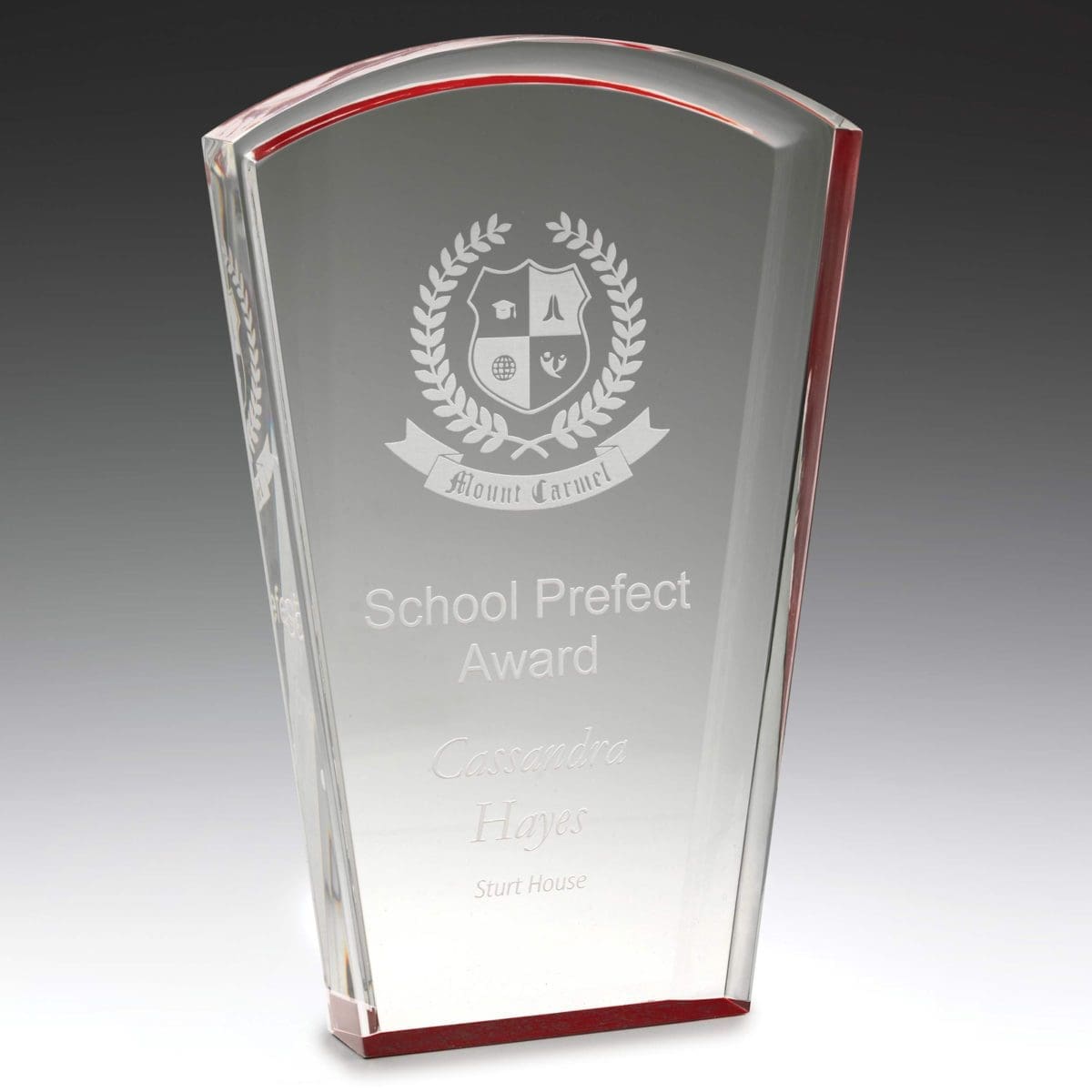 The ‘Solar’ series of acrylic awards present multi-coloured options – a self-standing design ideal for personalisation. Select blue, red or green for your event or presentation. Acrylic supplied in presentation gift box.