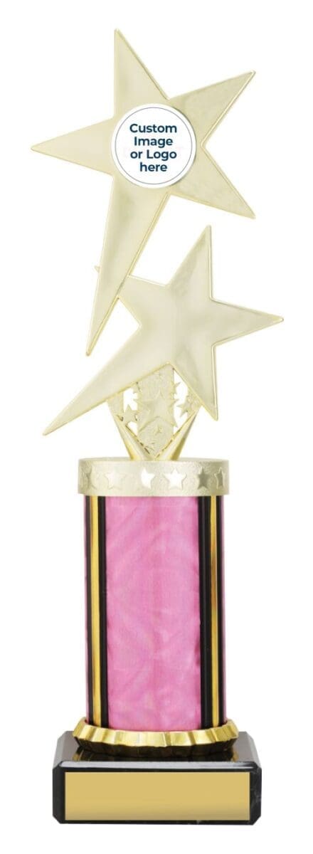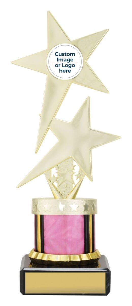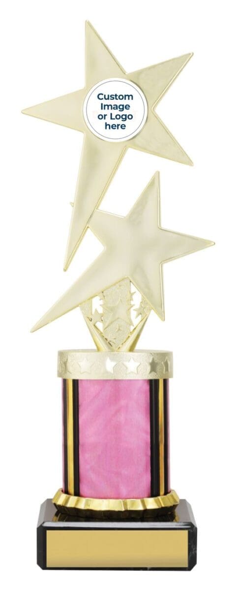 Adventus Trophy Series: The versatile Twin Star series showcases a captivating star-inspired top mounted on vibrant Dazzle columns. Available in multiple sizes, these trophies offer a range of options to suit your needs. Personalize your trophy with Free Laser Engraving to make it truly special. An exceptional choice for recognizing outstanding achievements.