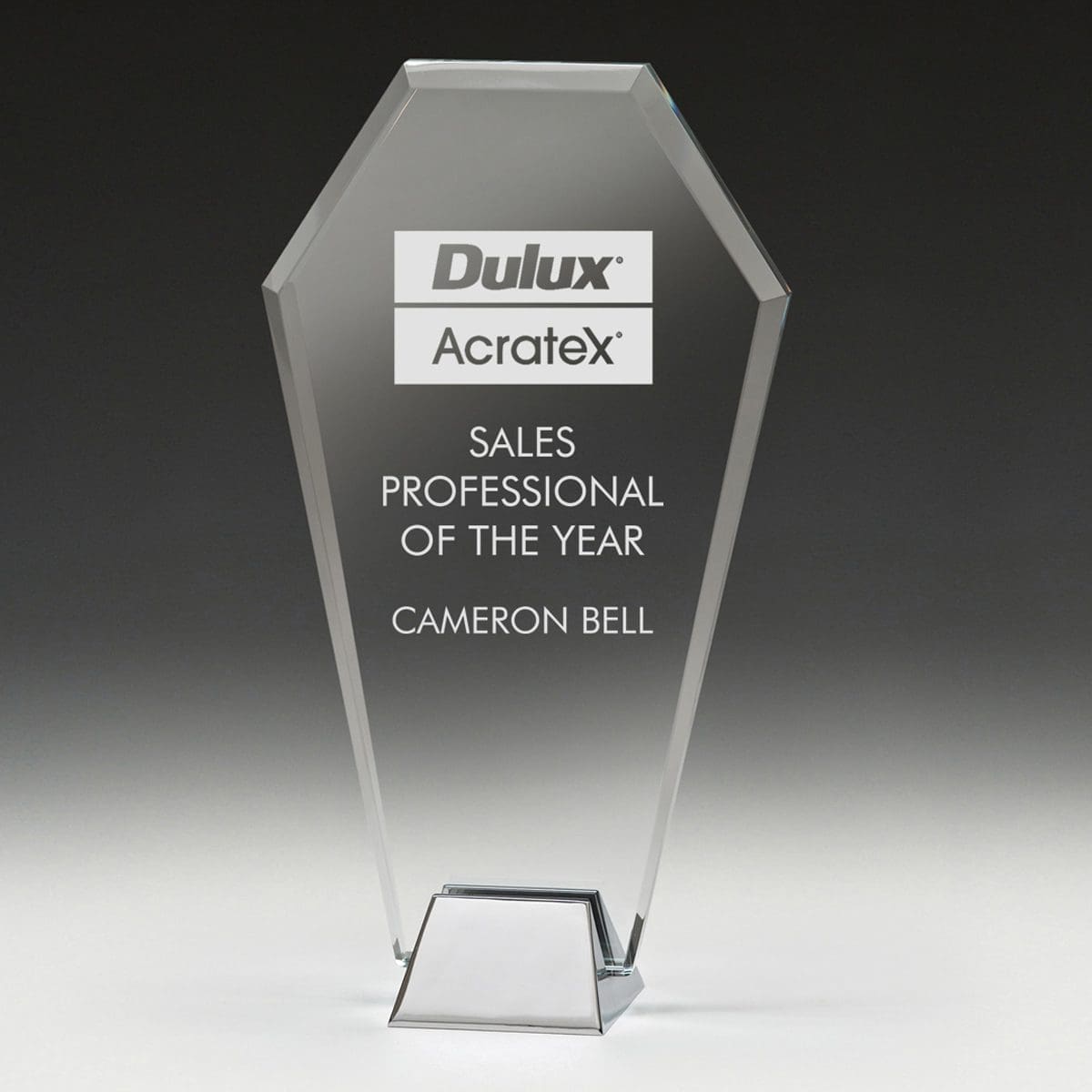 Glass awards feature metal base for extra prestige, Albion Series offers great value & design. Detachable base for ease of use.