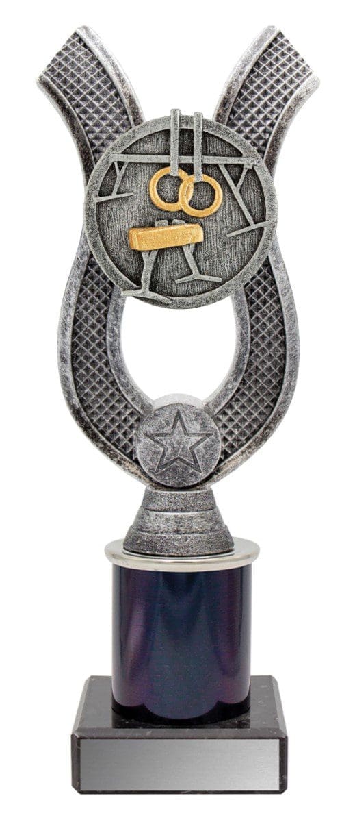 Visually unique series of anchor style trophies that feature 3D front with a marble base. Space for 25mm colour logo & finished in classic antique silver. Available in 3 sizes.