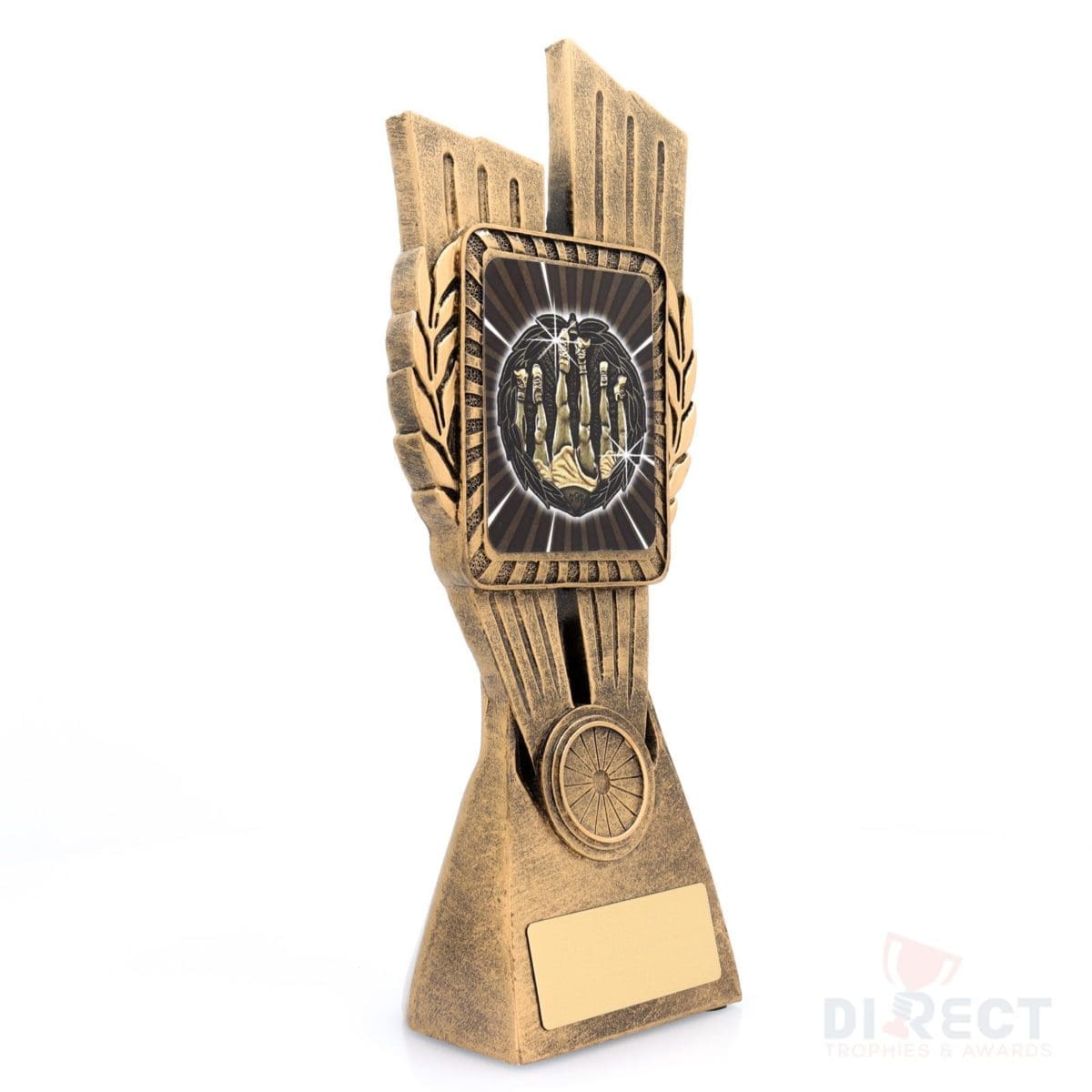 This Antique Gold Lynx Trophy is the perfect award for athletics and running events including cross country and marathon. Featuring a classic wreath and vibrant running theme design, this trophy is customisable and available in 4 impressive sizes. Matching Lynx medal also available to offer full range of awards.
