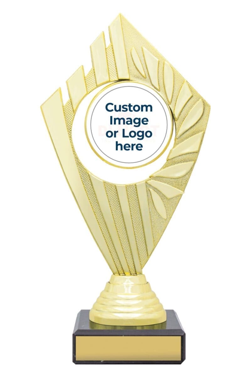 Arrow Gold Blade Trophy suitable for any event or occasion. Complimentary colour printed logo or image can be showcased on this award with free engraving on base of trophy.