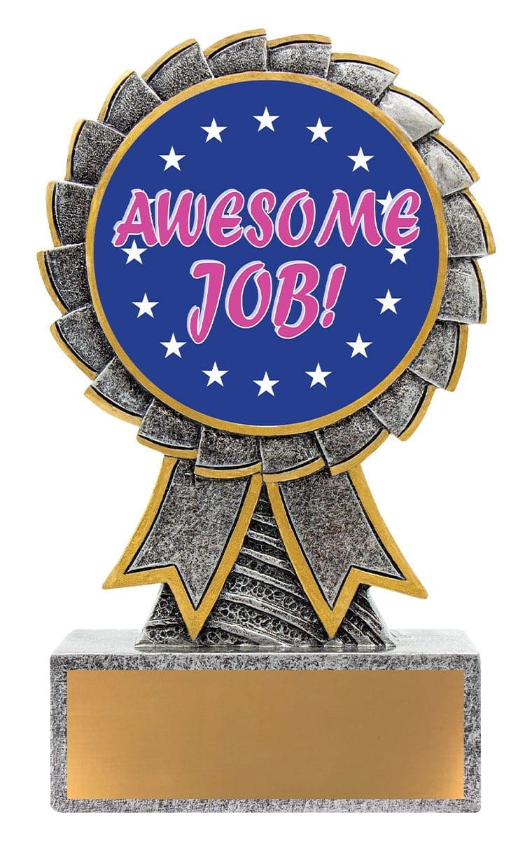 Aster series of trophies provides an affordable design that showcases a large 50mm colour image. Silver award with gold ribbon trims. Free engraving included.
