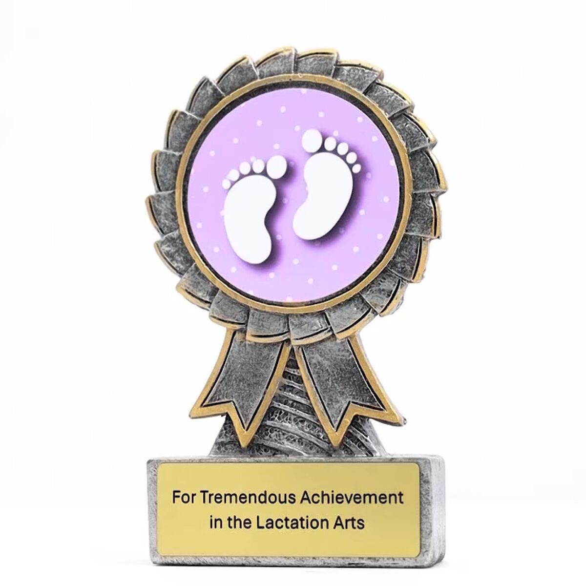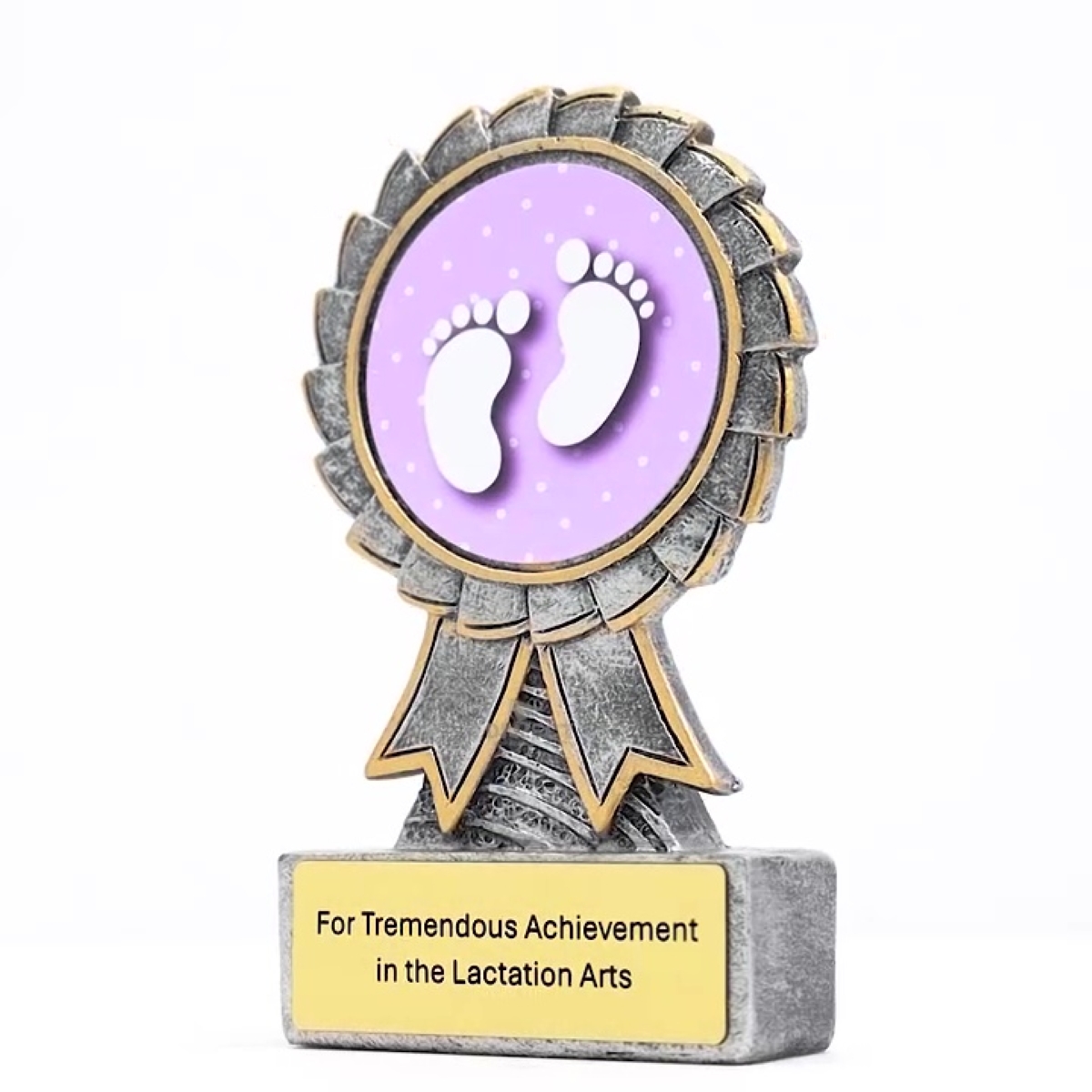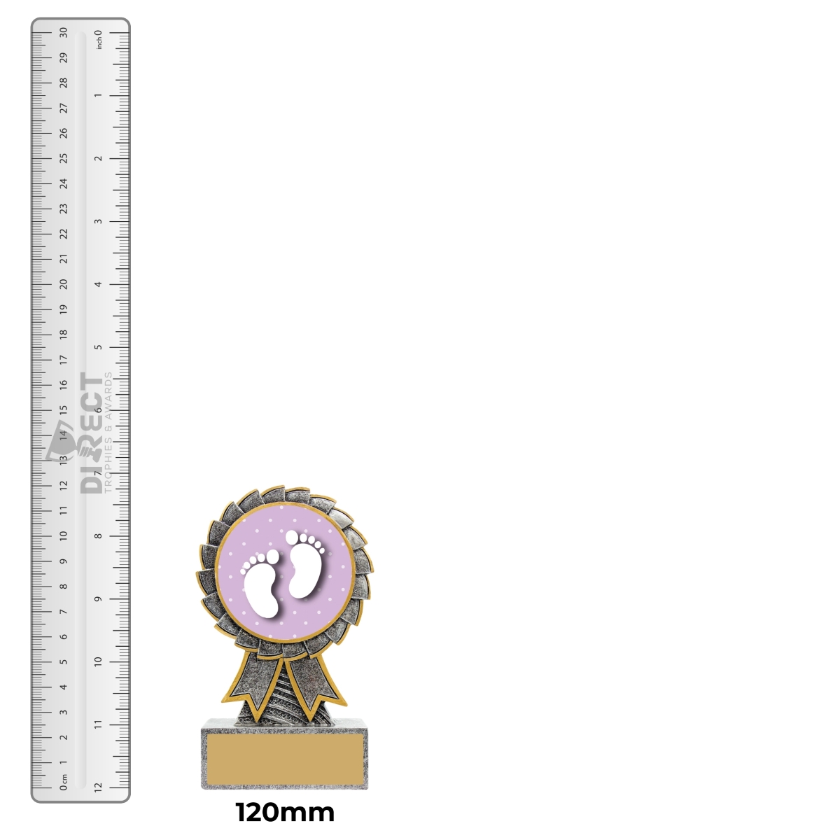 Aster series of trophies provides an affordable design that showcases a large 50mm colour image. Silver award with gold ribbon trims. Free engraving included.