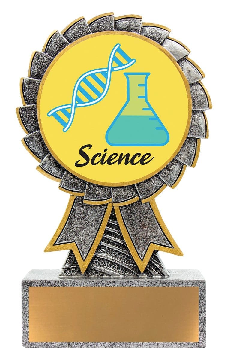 Aster series of trophies provides an affordable design that showcases a large 50mm colour image. Silver award with gold ribbon trims. Free engraving included.