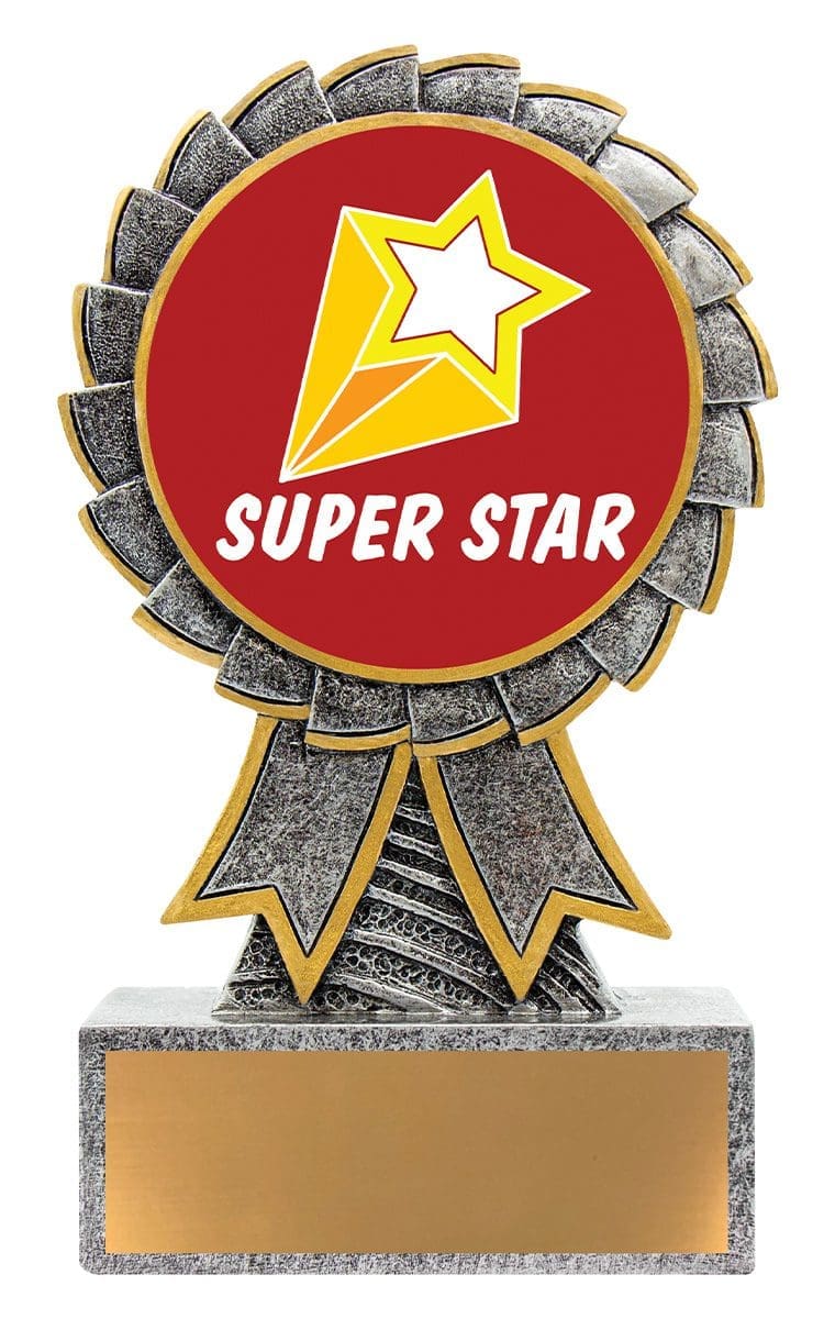 Aster series of trophies provides an affordable design that showcases a large 50mm colour image. Silver award with gold ribbon trims. Free engraving included.