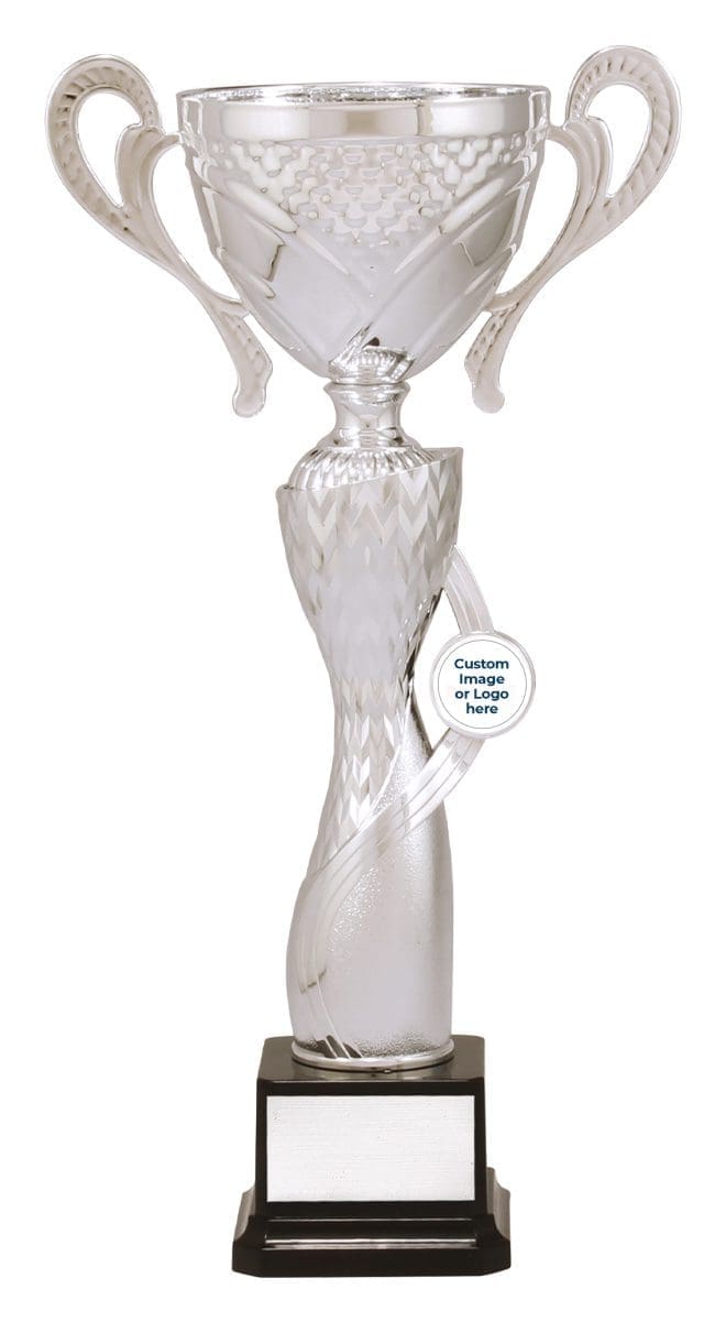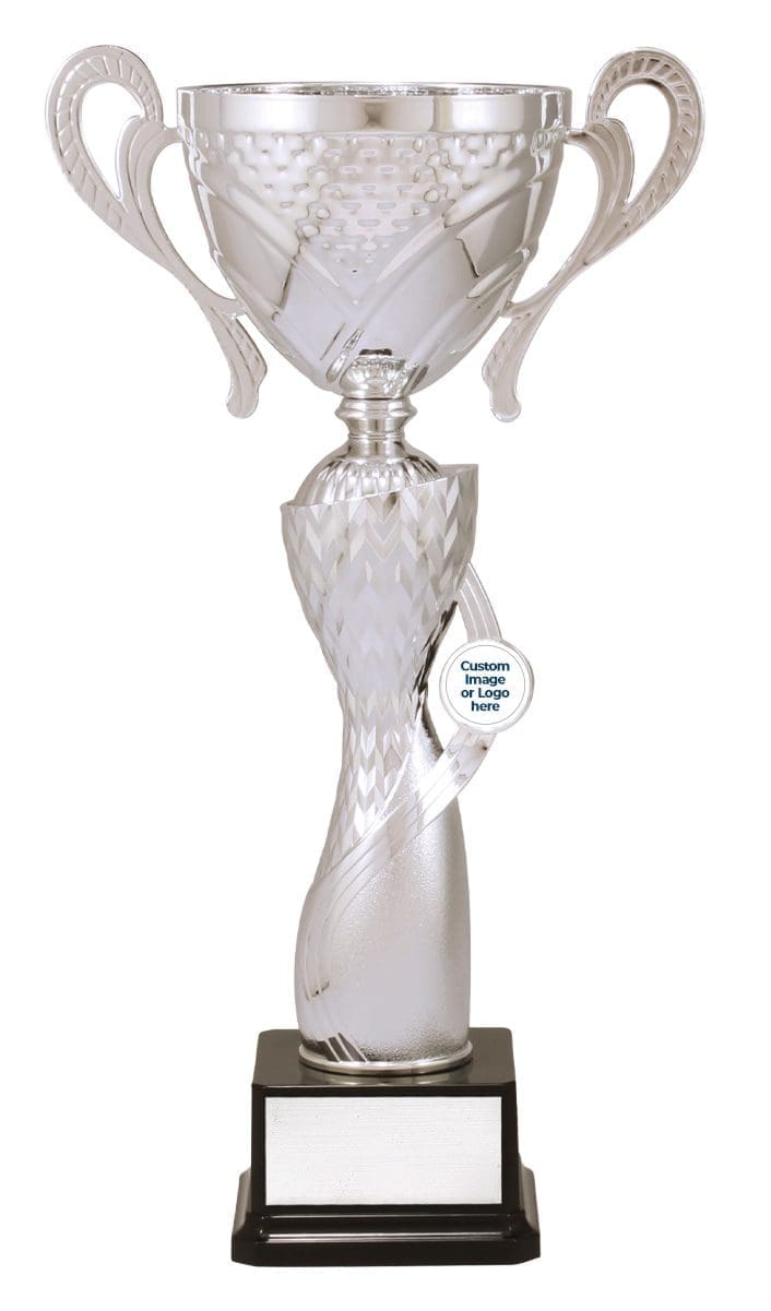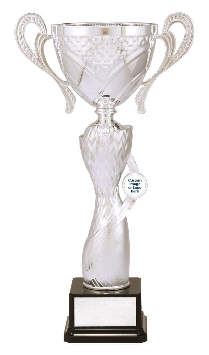 Astral Silver Cup Trophy, designed to show off a distinct and eye-catching aesthetic. The metal bowls feature a stylish design with handles, adding a touch of prestige. Available in multiple sizes, it offers options to suit various recognition needs. Celebrate accomplishments with the Astral Silver Cup Trophy, a symbol of excellence and remarkable design.