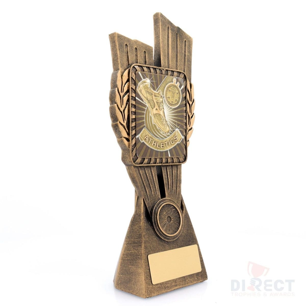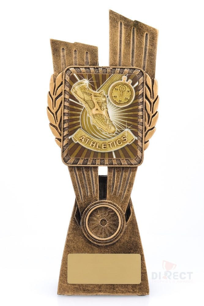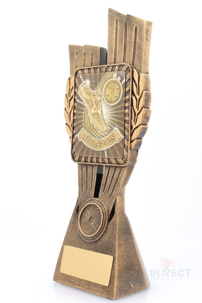 This Antique Gold Lynx Trophy is the perfect award for athletics based events. Featuring a classic wreath and vibrant athletics and running theme design, this trophy is customisable and available in 4 impressive sizes. Matching Lynx medal available to complete the range of awards on offer.