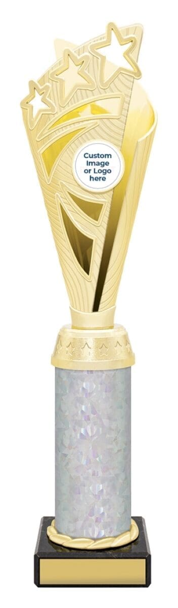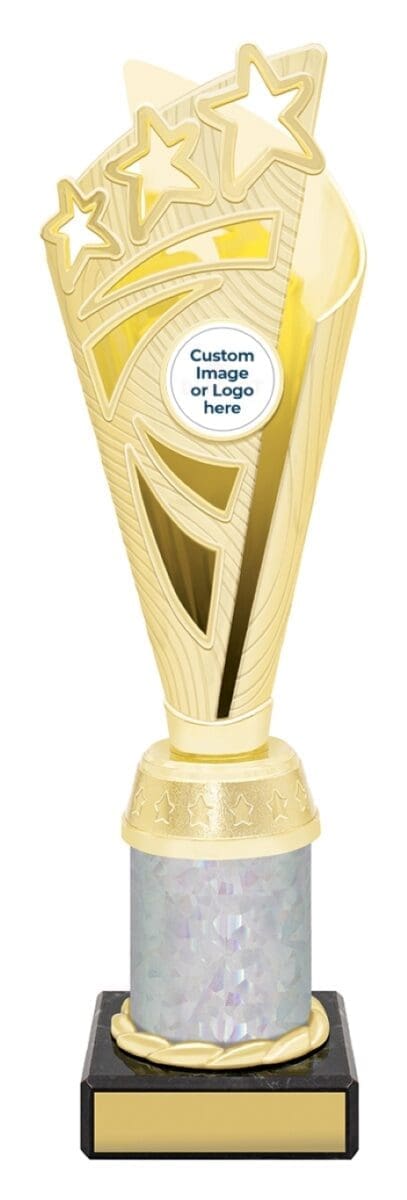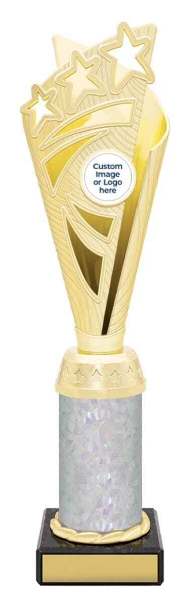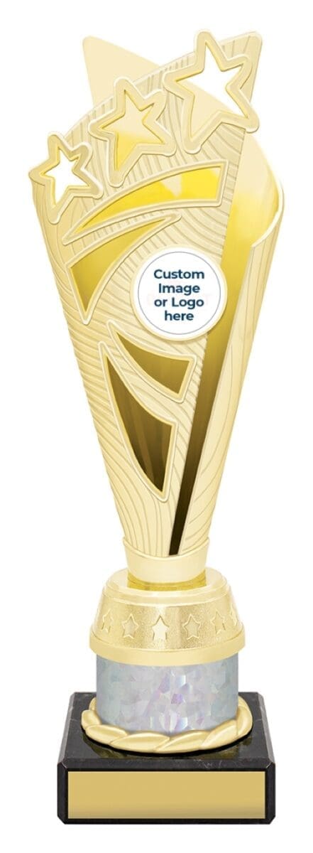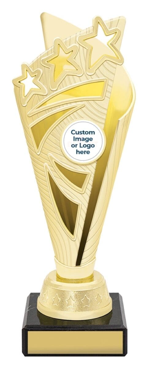 Avianstar Trophy Series: This energetic trophy series features a captivating star-inspired design, characterized by its swirling patterns and abstract cutouts. Available in a range of sizes, these trophies are perfect for celebrating remarkable accomplishments. Enjoy Free Laser Engraving with every order.