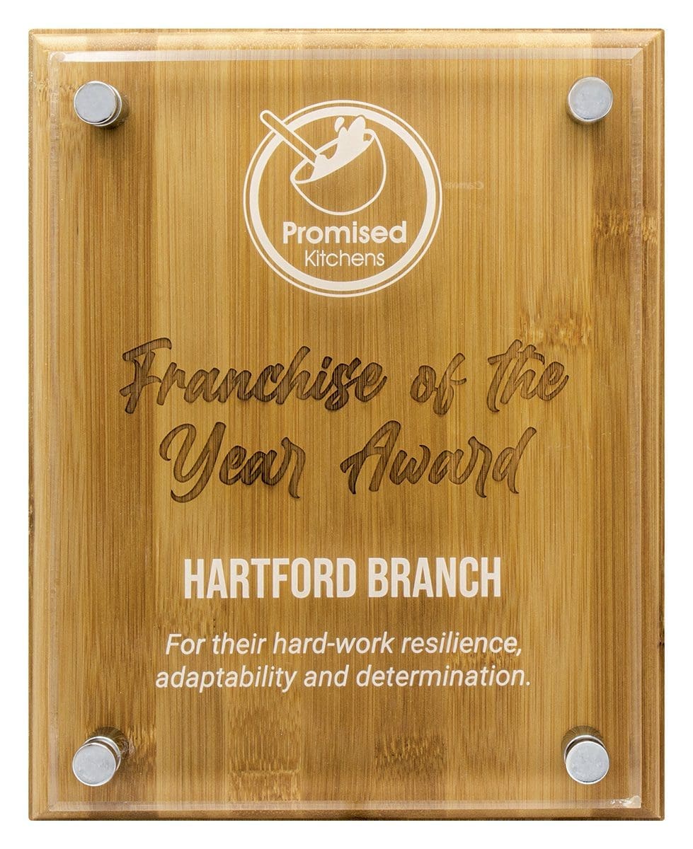 Acrylic set on bamboo plaques allows for multiple options of personalisation. Create a truly remarkable award with this floating plaque.