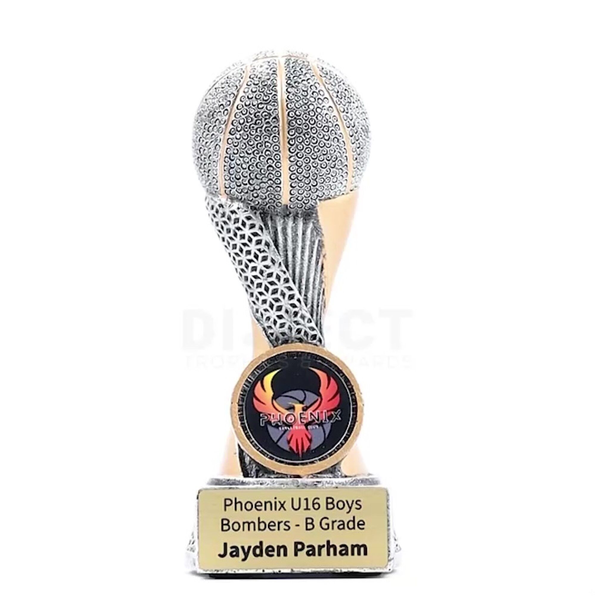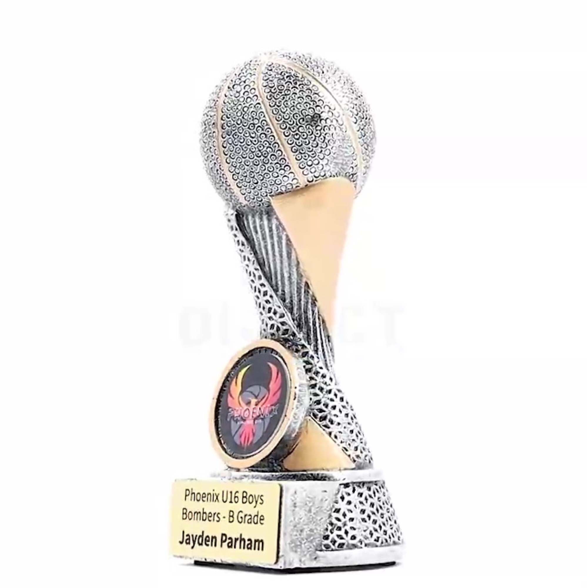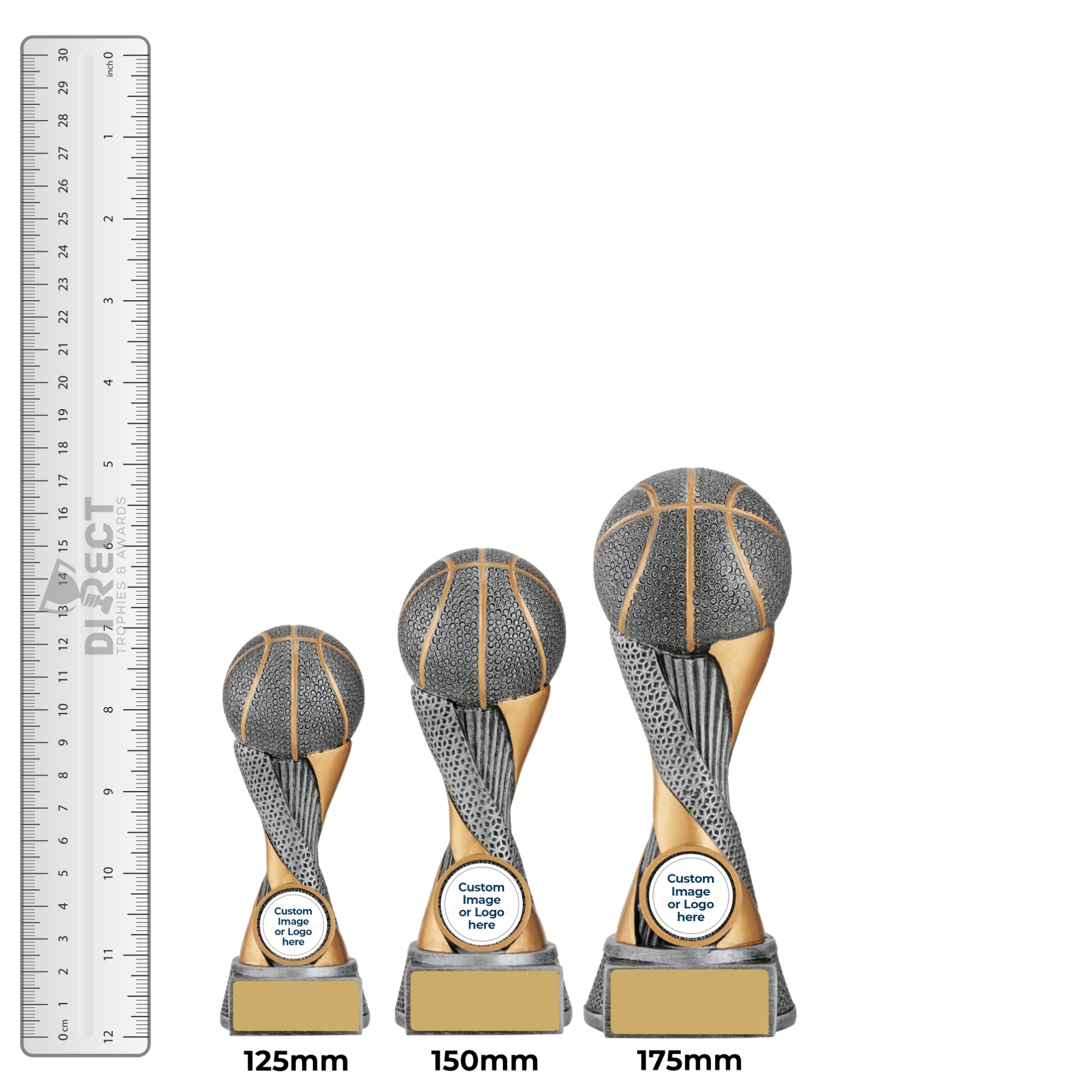 Apex trophies for Basketball offer the combination of elegant design, multi-textured elements and brilliant silver & gold colours. Central space for your logo.