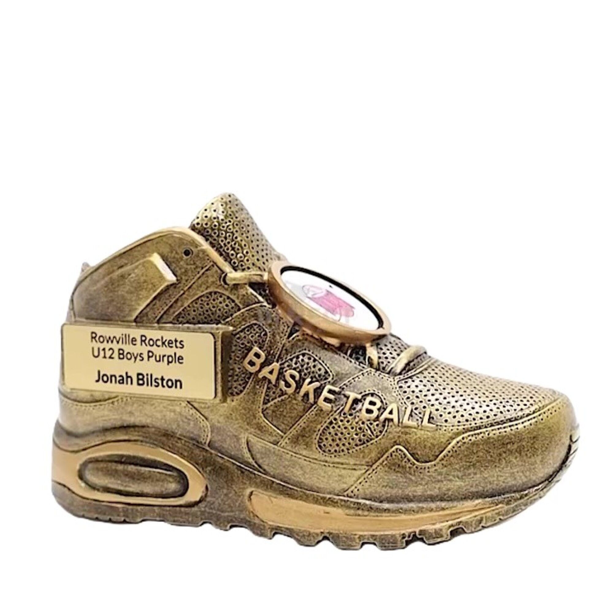 Introducing the Basketball Mini Shoe Trophy: This flawless design is perfect for basketball trophies, catering to various age groups. It’s a fun and rewarding choice that also provides ample space for your custom logo if desired. Enjoy the added bonus of free laser engraving to personalize your trophy.