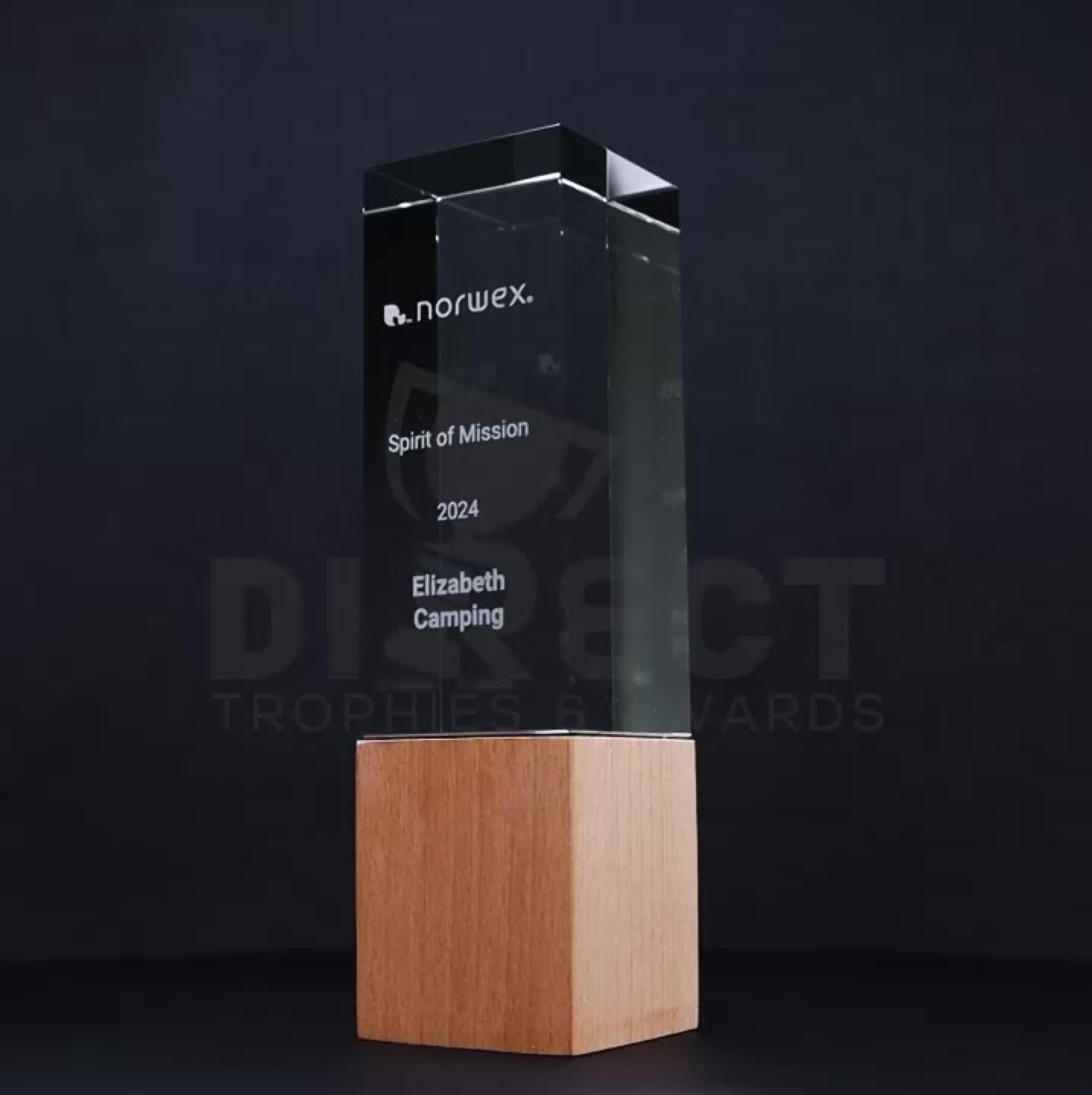 Introducing the Binomius Crystal Wood Block Award, a creative masterpiece that features a 60mm crystal block beautifully showcased on a wooden base. This award is a symbol of creativity and excellence. It comes presented in a gift box and includes free laser engraving for a personalized touch. Celebrate outstanding achievements with the Binomius Crystal Wood Block Award and make a lasting impression.