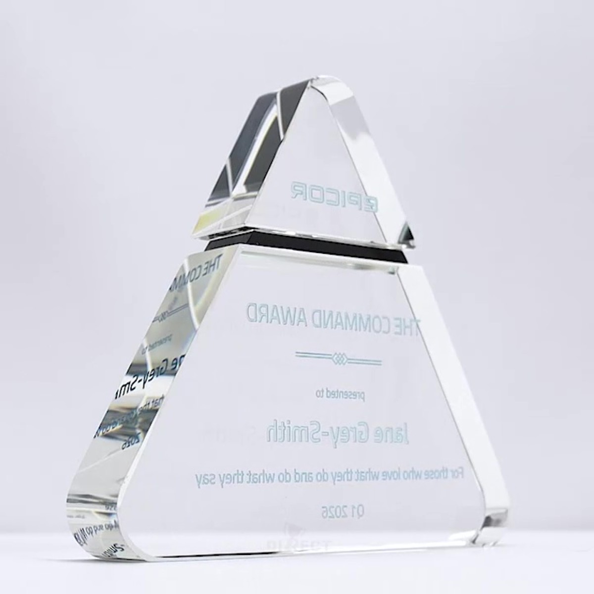 The Moonstone Award redefines recognition. This eye-catching triangular crystal features a distinctive black moon design and comes in three versatile sizes. Delivered in an elegant gift box with colour printed included, it’s the perfect way to make an lasting impression.