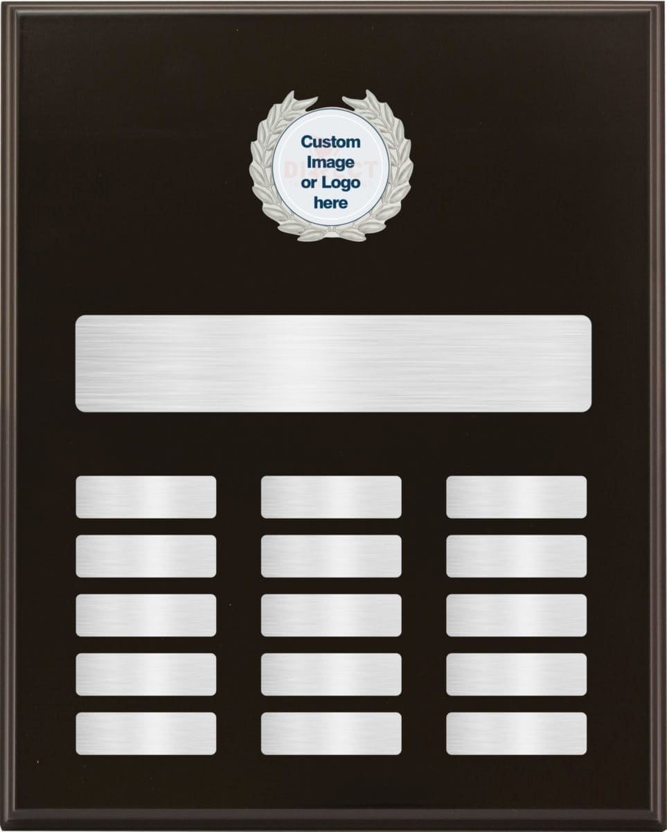 Standard black timber veneer plaques in larger sizes. To be used as plaque award or perpetual as required. Blank plates included as per setup shown. Title plate included in the price. Engraving on perpetual plates extra cost.