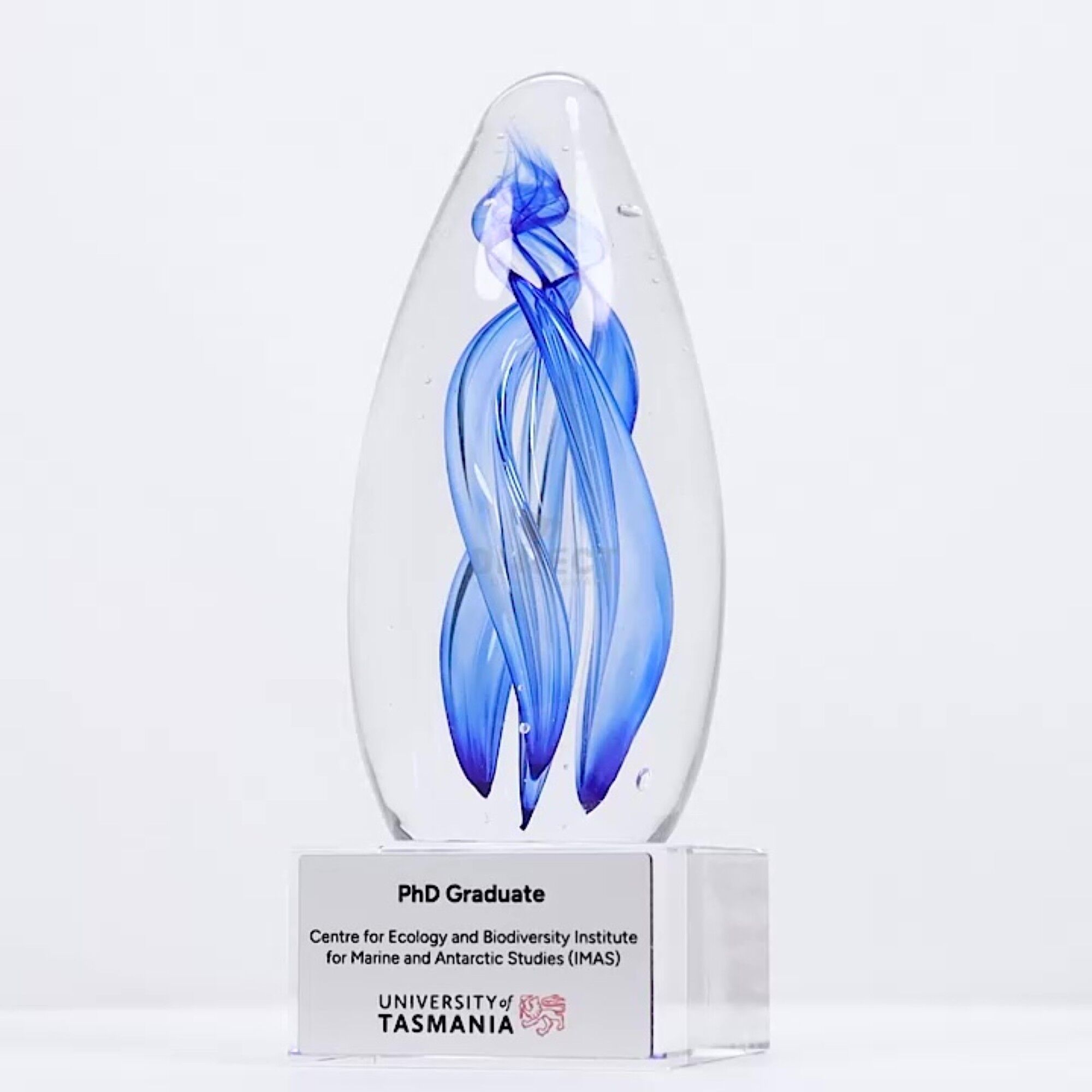 The Blue Dome Award features an elegant blue helix pattern and clear crystal base for engraving. Art Glass range offers variety of bold shapes and exciting colour combinations. Art Glass can be considered an effective alternative to traditional award options. Supplied in Gift Box. Base dimensions – 70 x 35mm.