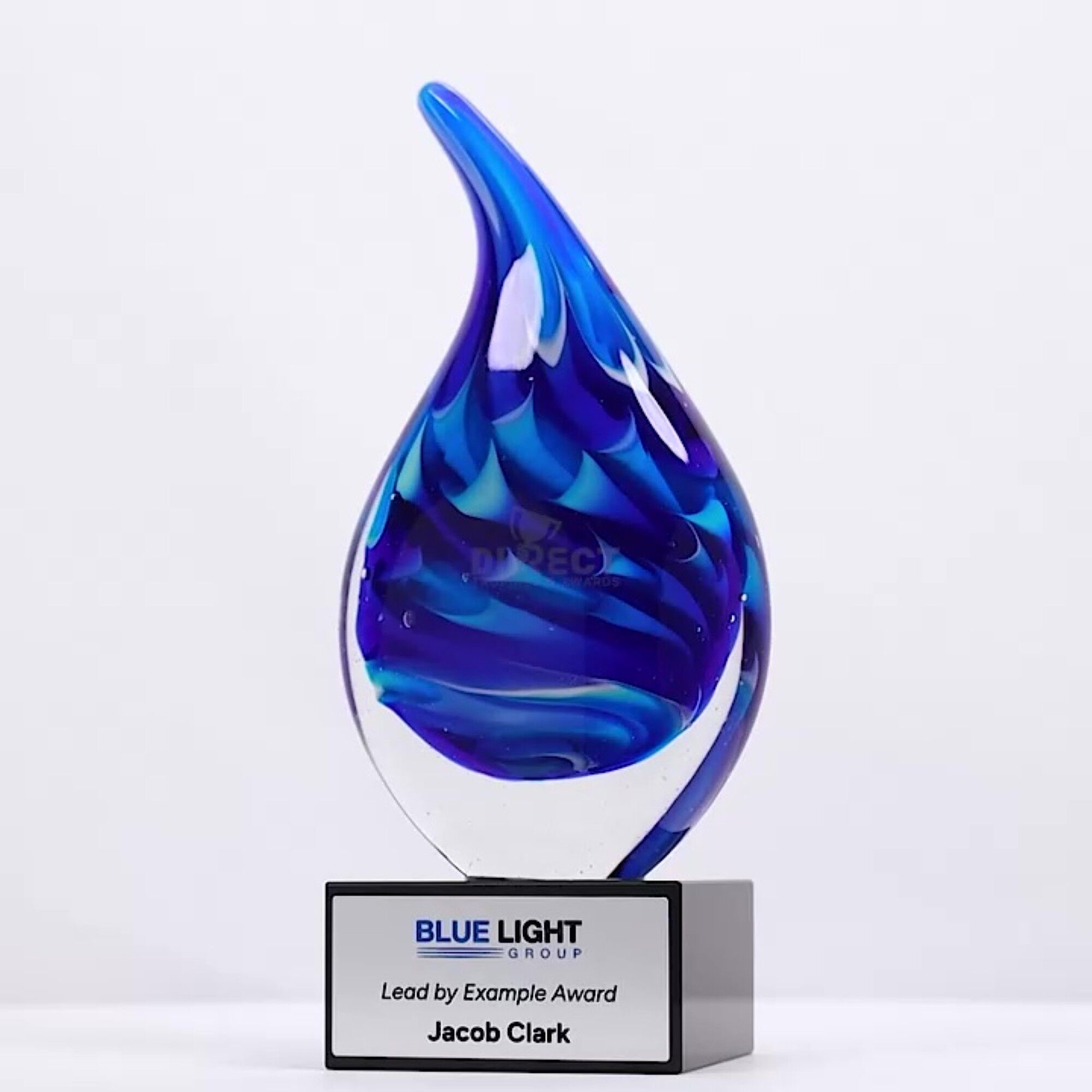 The Blue Dream Award makes a dramatic statement with black crystal base and striking multi-layered blue colour pattern. Art Glass range offers variety of bold shapes and exciting colour combinations. Supplied in Gift Box. Base dimensions – 70 x 35mm
