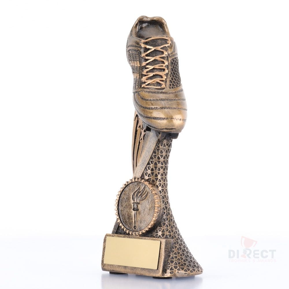 Versatile series of trophies for soccer, footy and rugby awards feature an elevated boot with superb design details, multi-star elements and position for custom insert (if required).