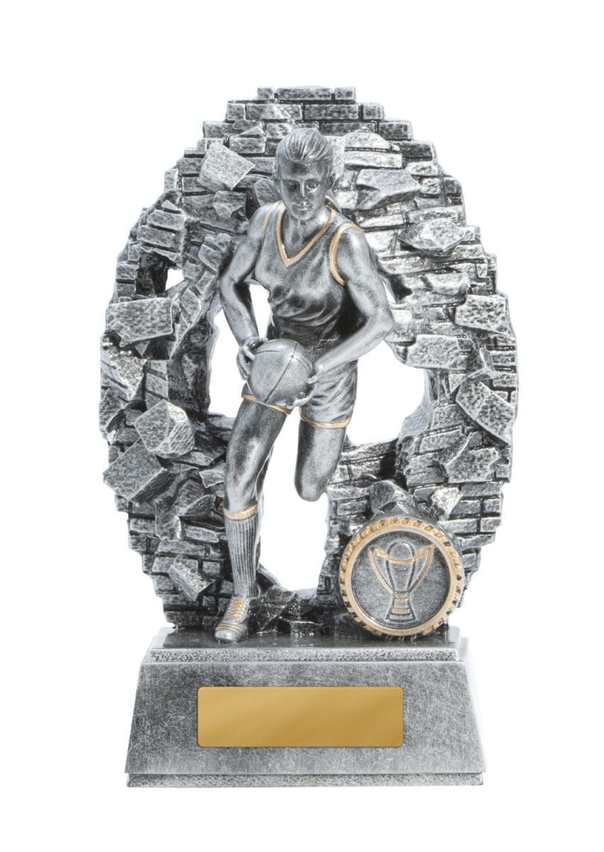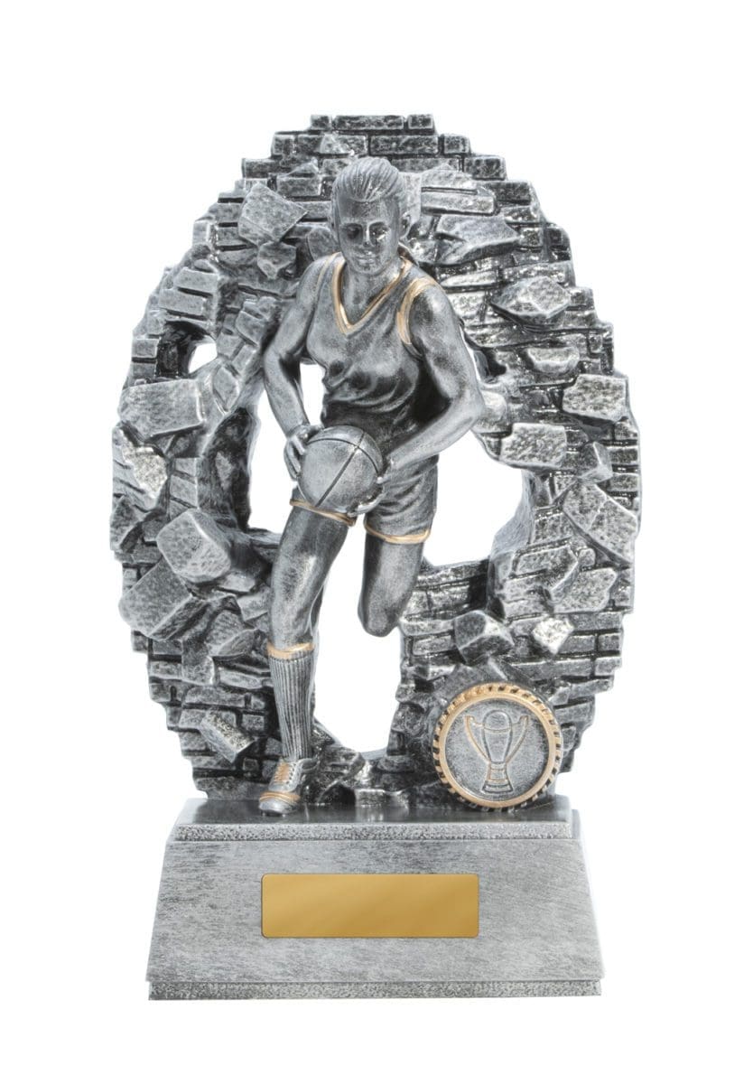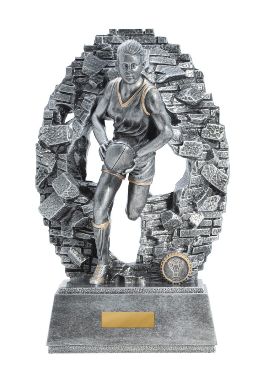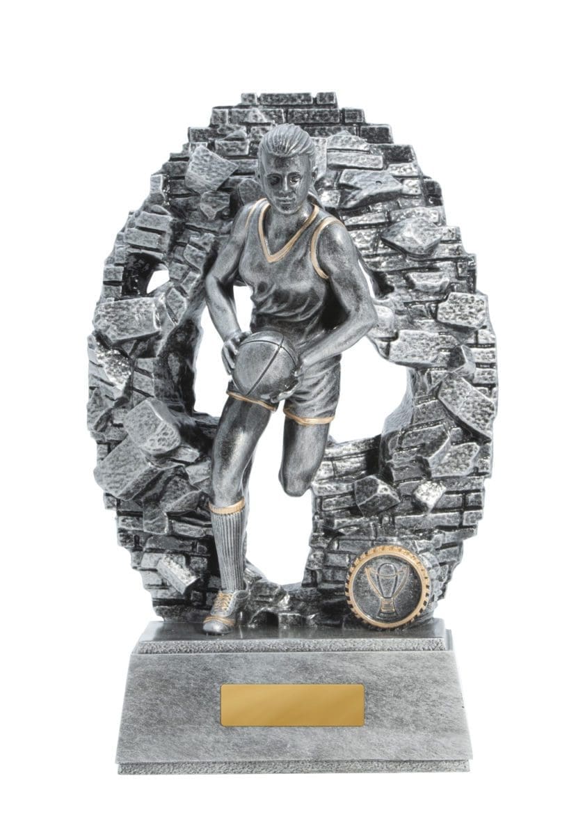 The Breaktrue Award Trophy is the perfect award for MVPs, players, or any sports star! This trophy features a break through design with a smashing effect that shows action and movement. It is made from resin material and comes in a variety of sizes. It includes free engraving and comes with a complimentary logo.