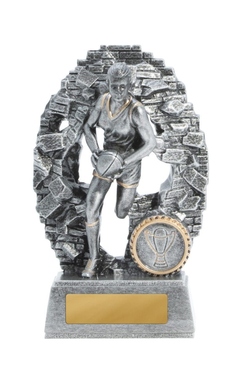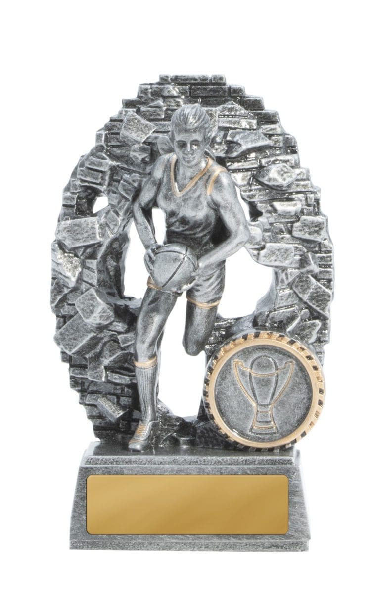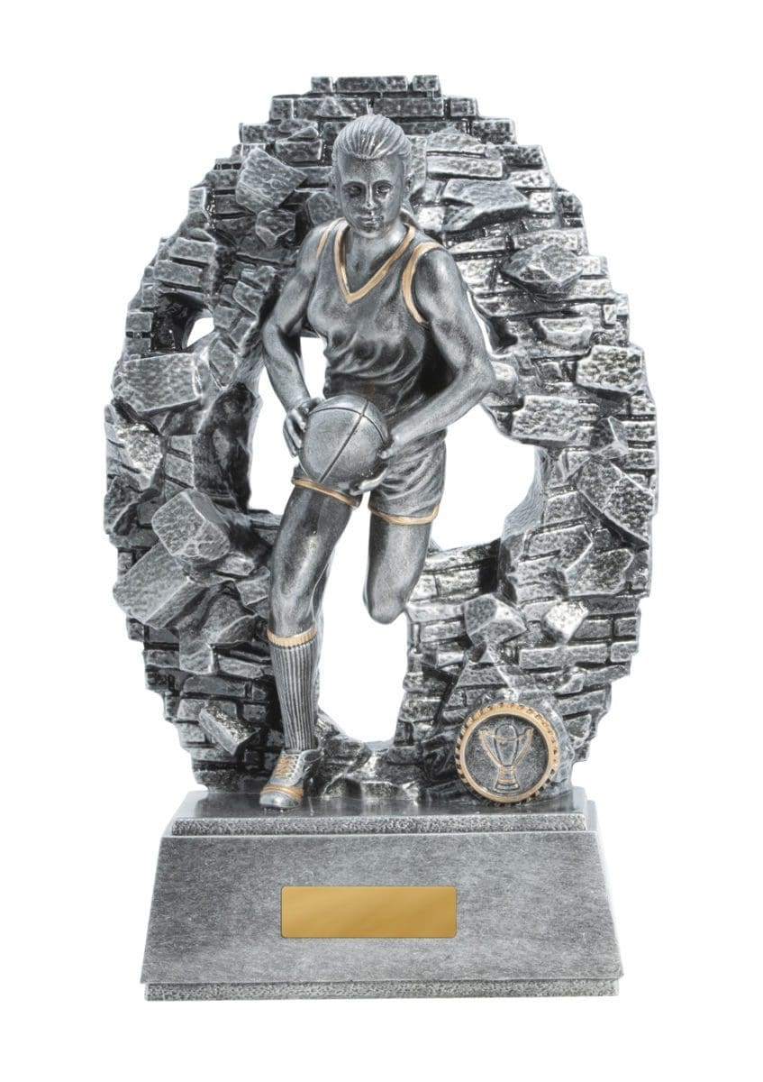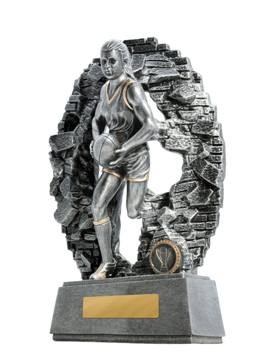 The Breaktrue Award Trophy is the perfect award for MVPs, players, or any sports star! This trophy features a break through design with a smashing effect that shows action and movement. It is made from resin material and comes in a variety of sizes. It includes free engraving and comes with a complimentary logo.