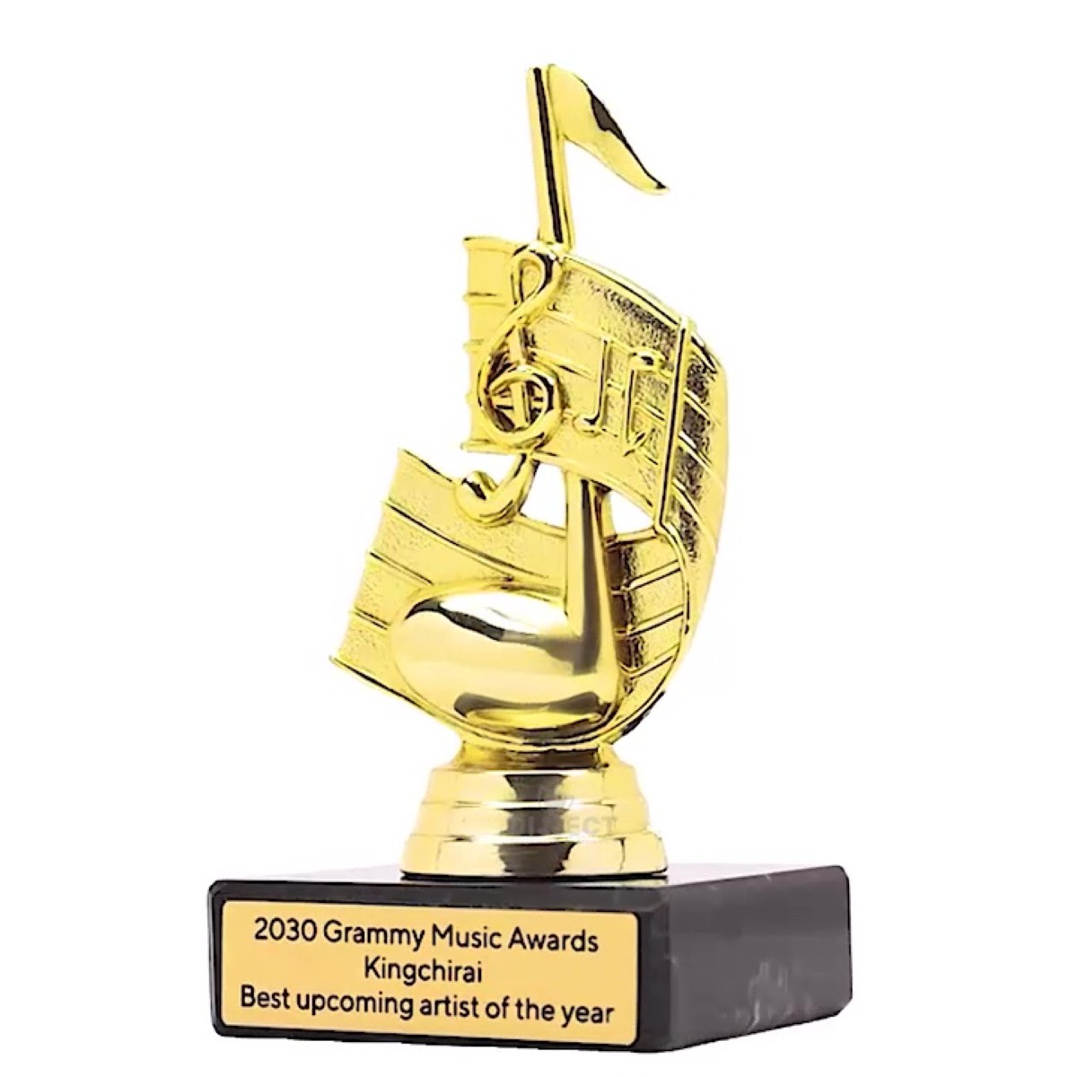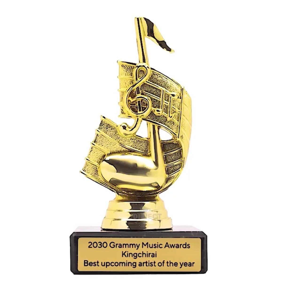 Introducing the Cadence Music Note Gold Trophy, a prestigious award for music enthusiasts. The trophy features a captivating music note design and is complemented by a premium black marble base. Personalize your trophy with free laser engraving to make it a cherished keepsake.