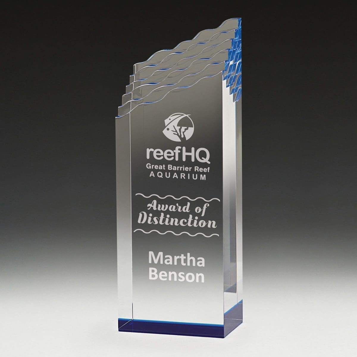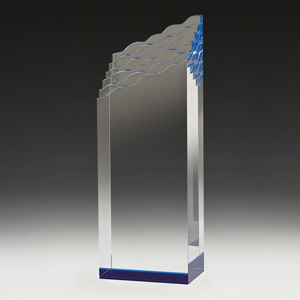 Introducing the Casblue Titan Acrylic Award, a true symbol of excellence. With its impressive thickness of 40-50mm, this award commands attention and makes a lasting impression. The cascading design with a ridged finish adds a touch of elegance. It comes beautifully presented in a gift box, ready for presentation. Enjoy the complimentary laser engraving service to personalize this freestanding masterpiece. Celebrate remarkable achievements with the Casblue Titan Acrylic Award and showcase greatness in style.
