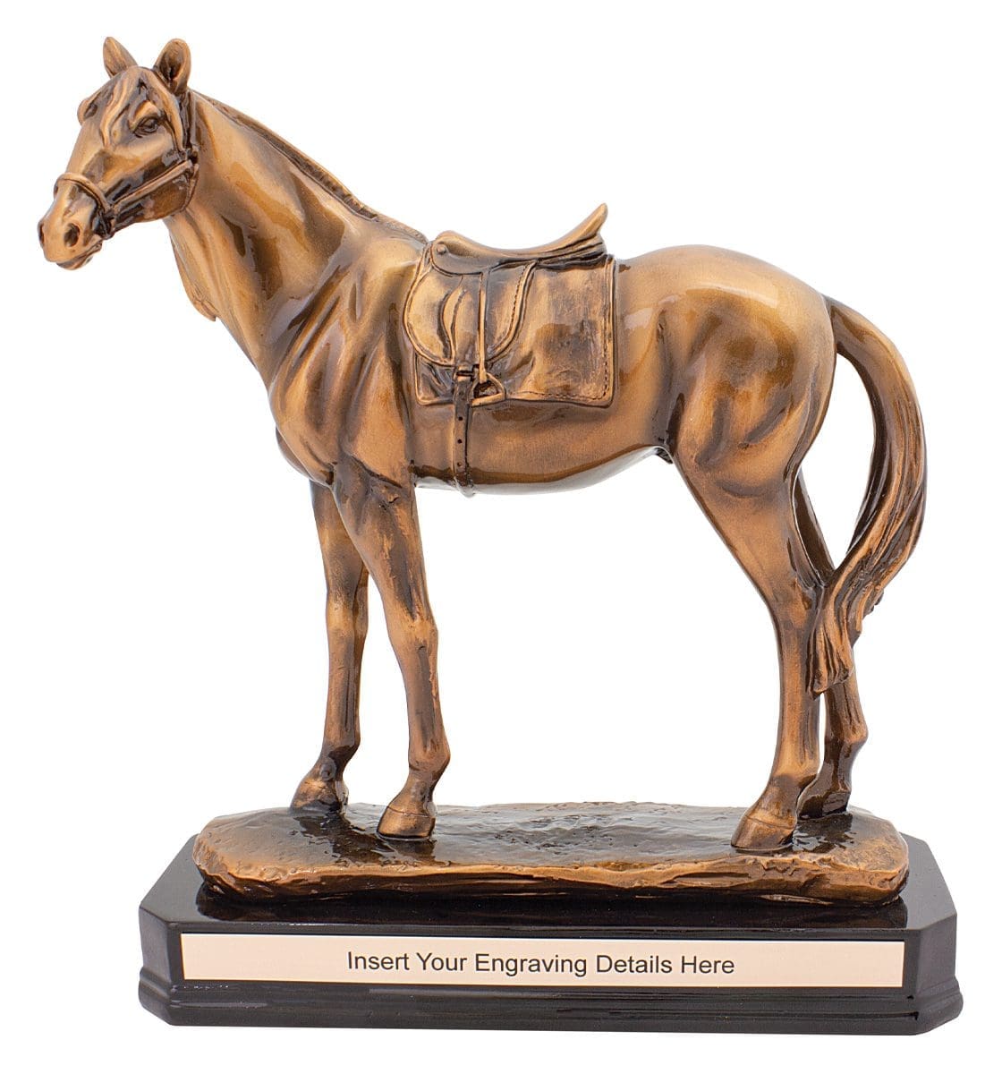 Standout trophy perfect for high profile events and presentations. Superbly rendered bronze trophy for horse racing and events. Trophy complemented by classic black base for your engraving requirements.