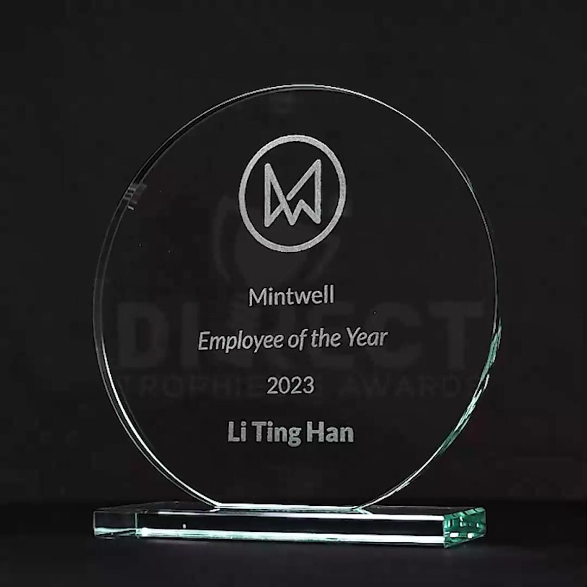 Jade Glass Circle Award series is a popular and affordable award option. Series in 3 sizes, circle is a universal shape that will be effective at your corporate or business event.