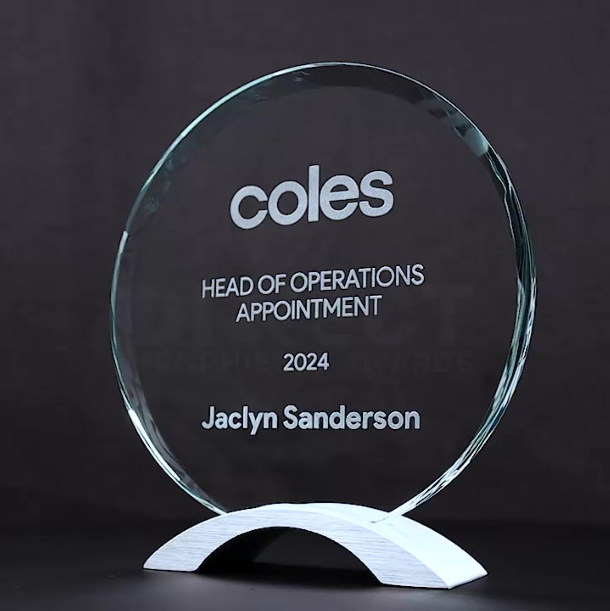 Circuit Award Chrome is a popular award choice. Glass circle atop the classic chrome base, well suited for your engraving requirements.