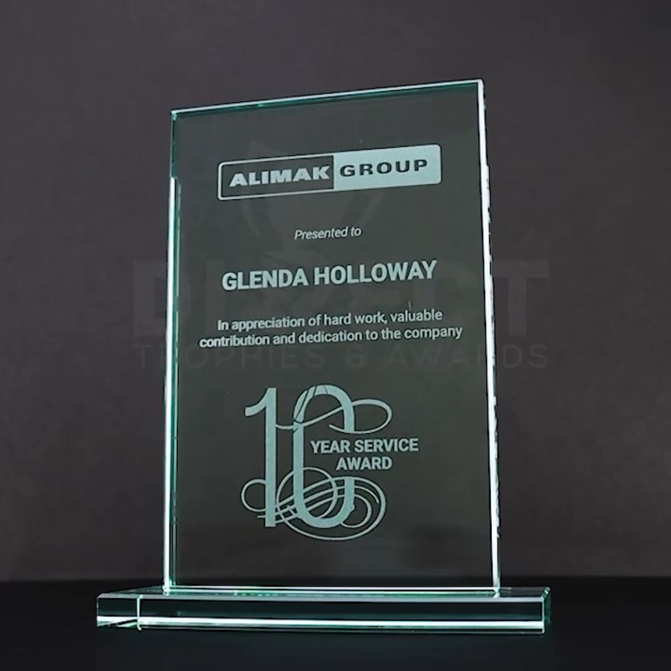 Jade Glass Award series is a popular and affordable award option. Series in 3 sizes, the classic rectangle shape will suit various types of awards events with considerable space for your requirements.