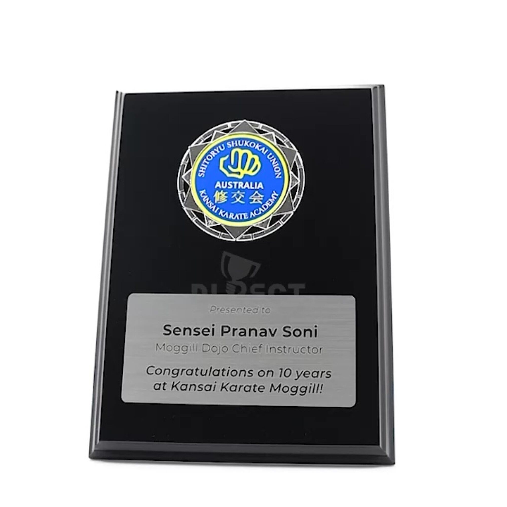 Compass Plaques present appealing design of budget plaque award in various sizes. Showcase your 50mm insert.