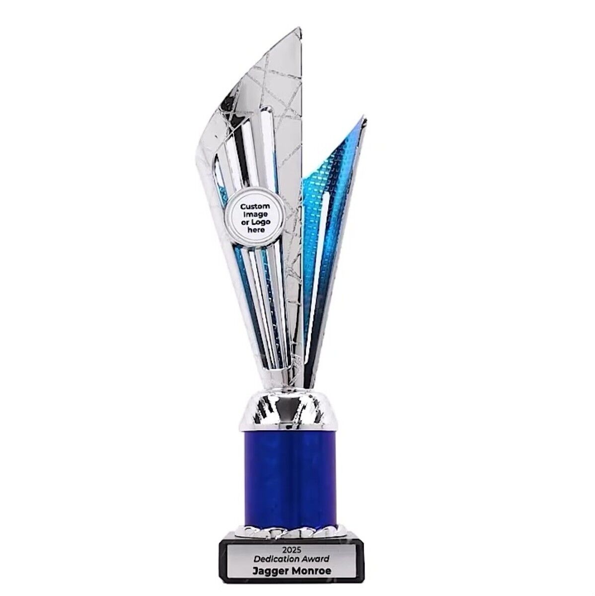 With a bold 3D design, the Cortan Trophy from the dynamic Legion series offers a selection of vibrant colour options to highlight your club’s logo prominently. Designed with a dedicated area for custom logos or images, this trophy ensures your branding takes centre stage. Includes complimentary laser engraving for a personalised and polished finish.
