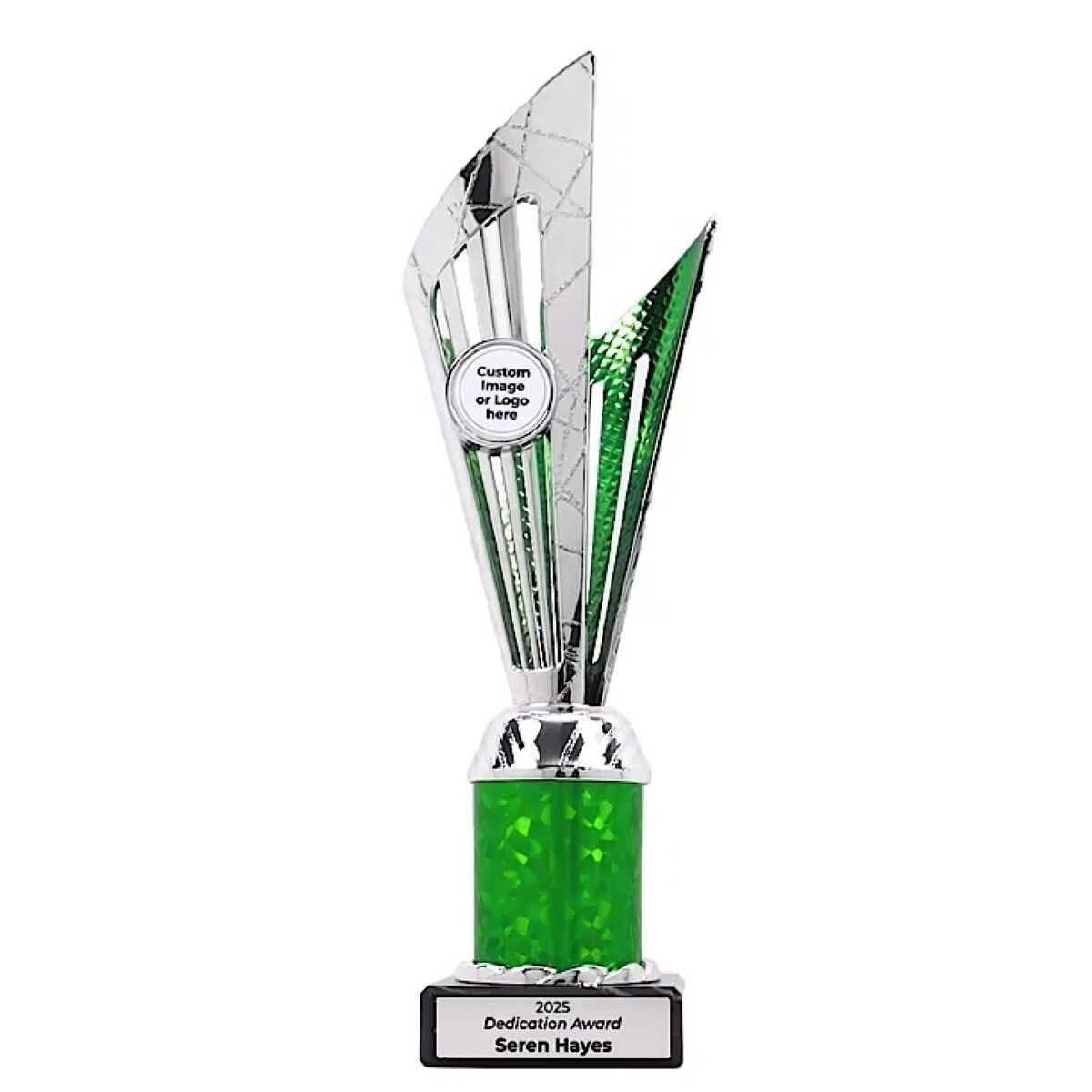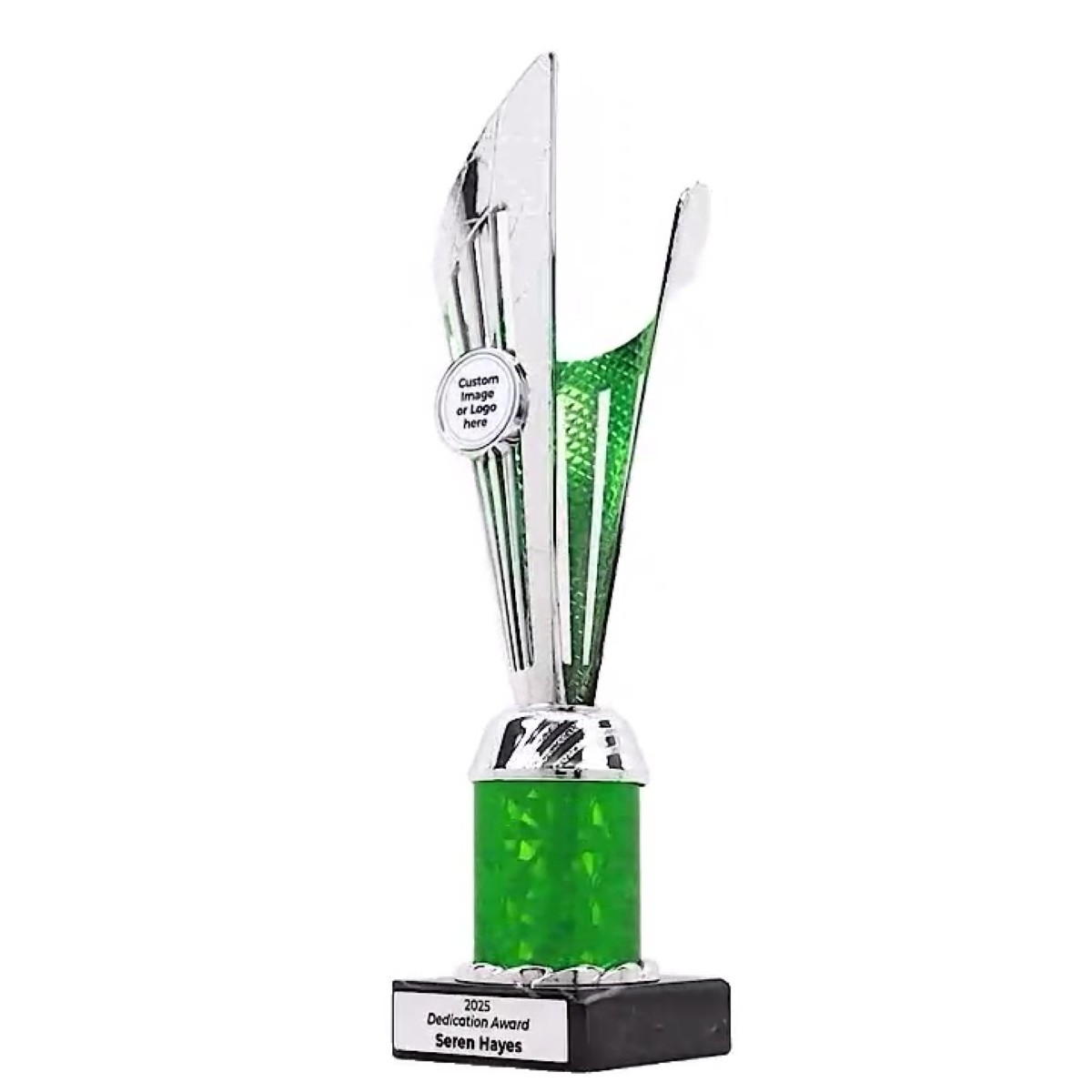 With a bold 3D design, the Cortan Trophy from the dynamic Legion series offers a selection of vibrant colour options to highlight your club’s logo prominently. Designed with a dedicated area for custom logos or images, this trophy ensures your branding takes centre stage. Includes complimentary laser engraving for a personalised and polished finish.