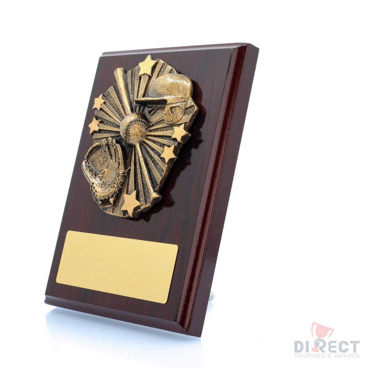 A classic gloss mahogany plaque with brilliant Cosmos front accompanied with a european gold plate showing black text engraving. Plaque includes silver screw on stand for display. Available in 2 sizes.
