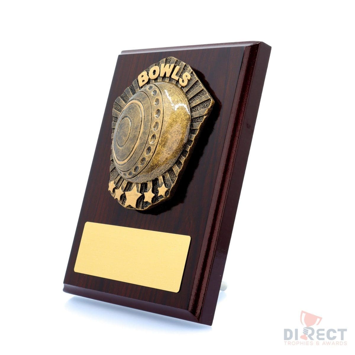 A classic gloss mahogany plaque with brilliant Cosmos front accompanied with a european gold plate showing black text engraving. Plaque includes silver screw on stand for display. Available in 2 sizes.
