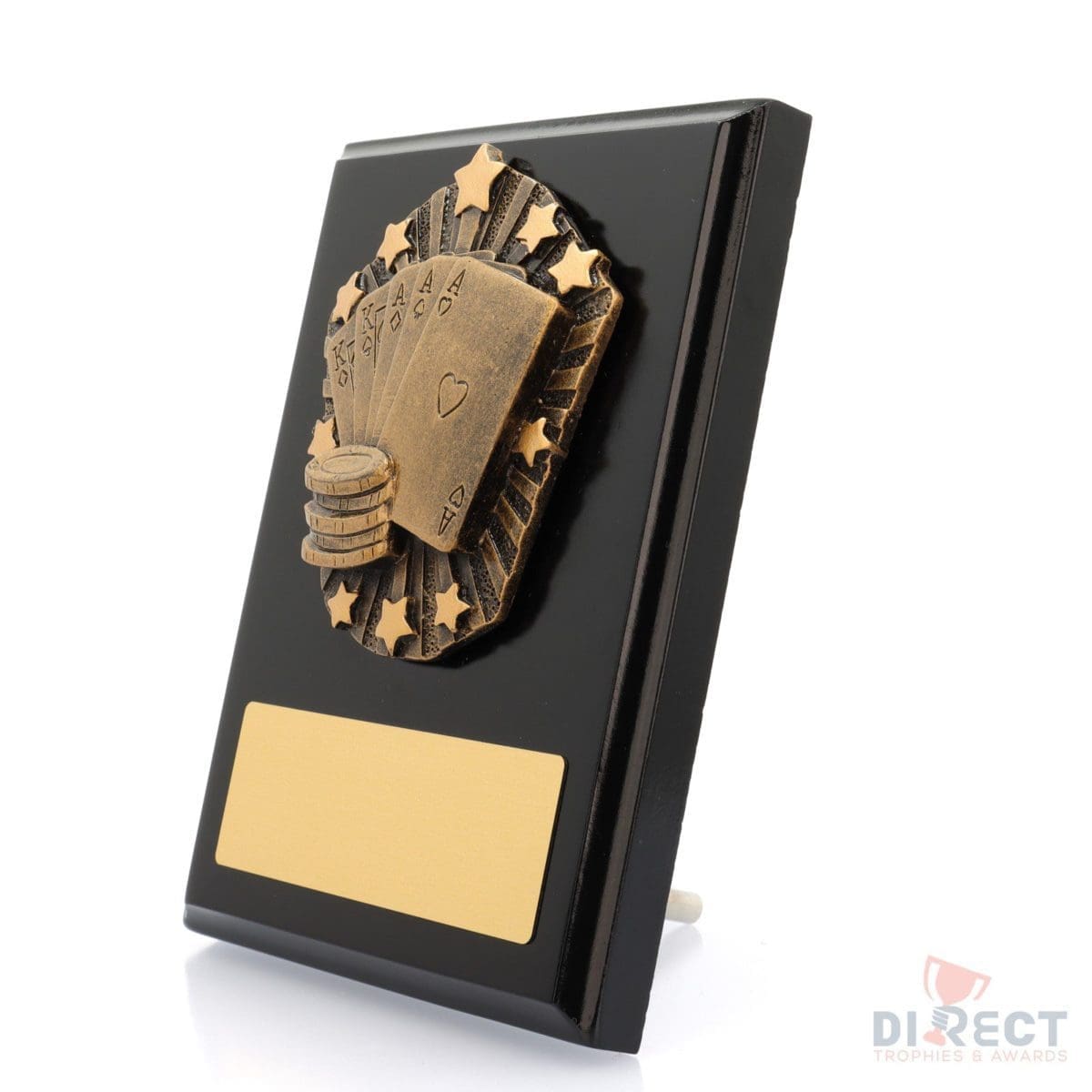 A classic gloss black plaque with brilliant Cosmos front accompanied with a european gold plate showing black text engraving. Plaque includes silver screw on stand for display. Available in 2 sizes.