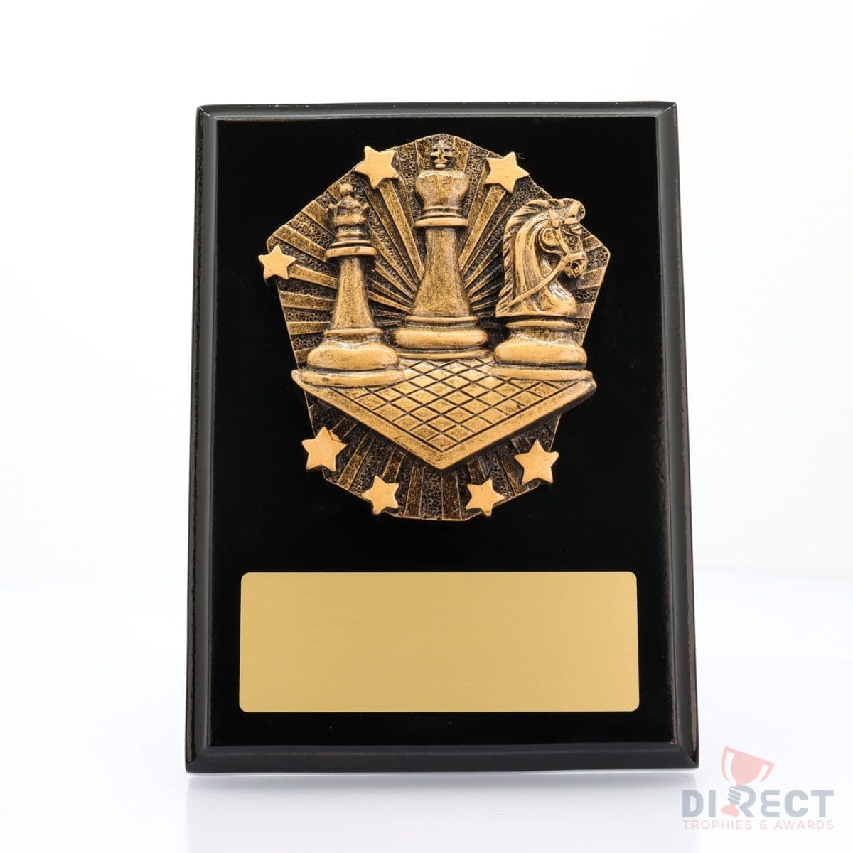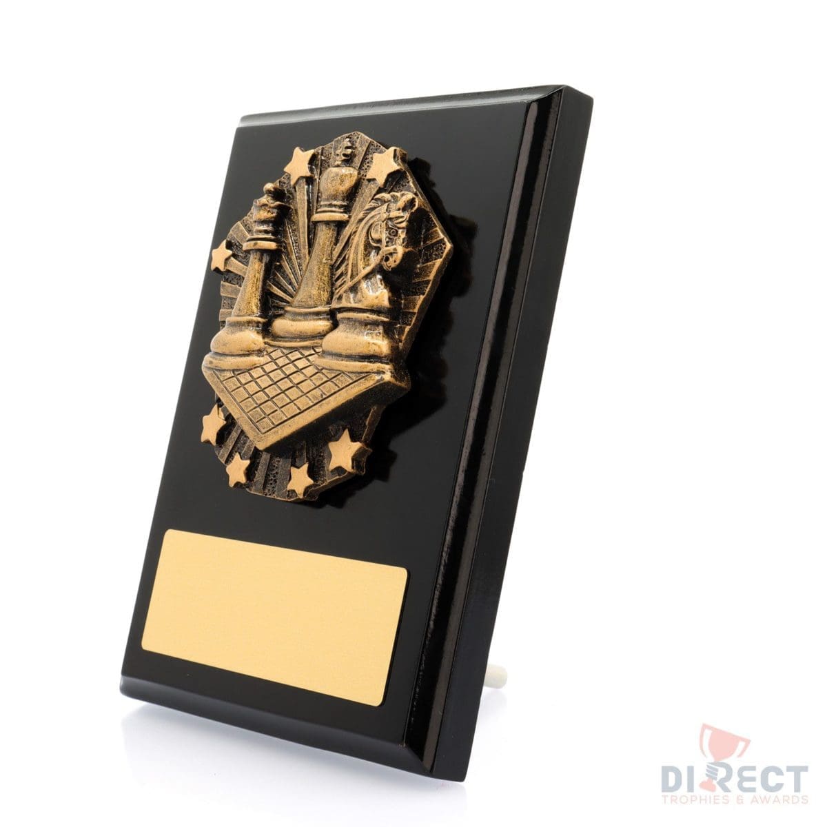 A classic gloss black plaque with brilliant Cosmos front accompanied with a european gold plate showing black text engraving. Plaque includes silver screw on stand for display. Available in 2 sizes.