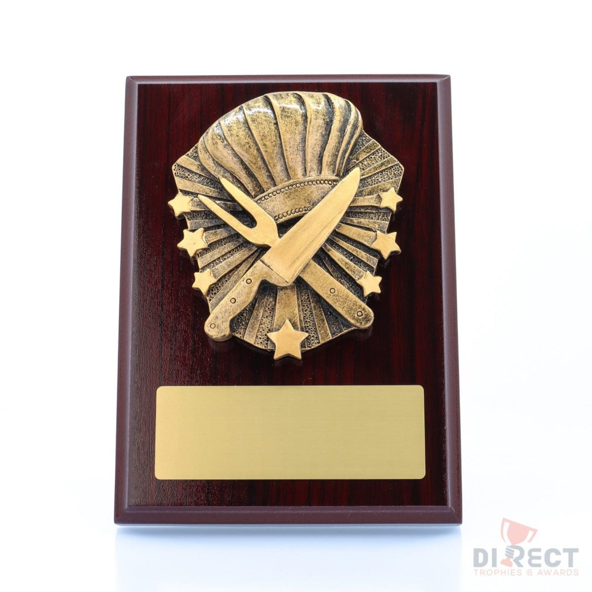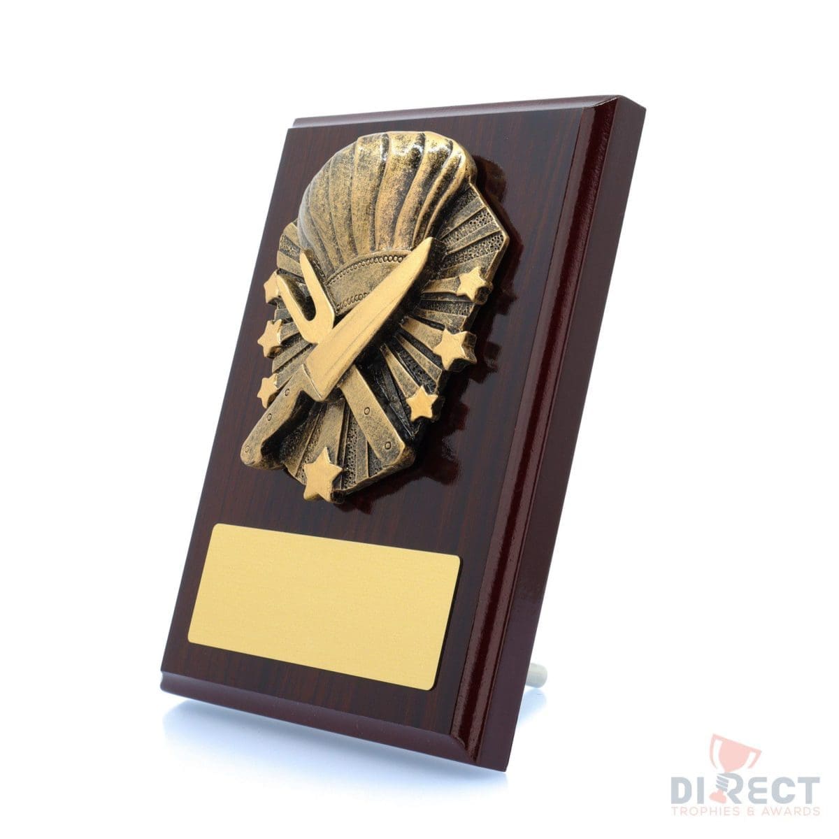 A classic gloss mahogany plaque with brilliant Cosmos front accompanied with a european gold plate showing black text engraving. Plaque includes silver screw on stand for display. Available in 2 sizes.