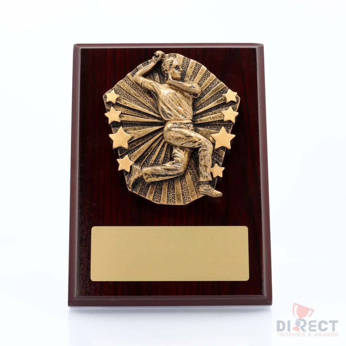 Cosmos Cricket Male Bowler Mahogany Plaque