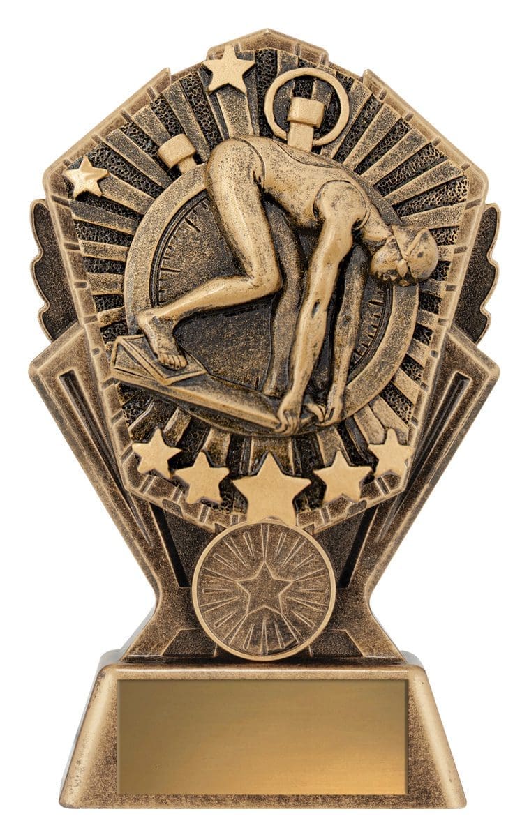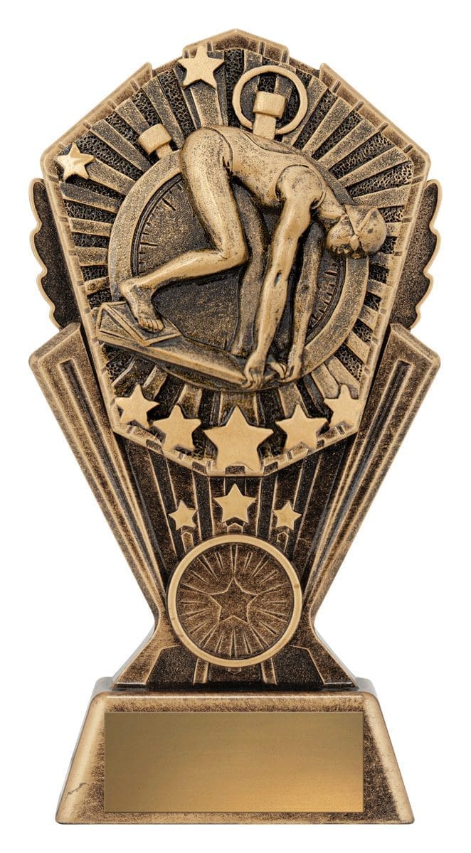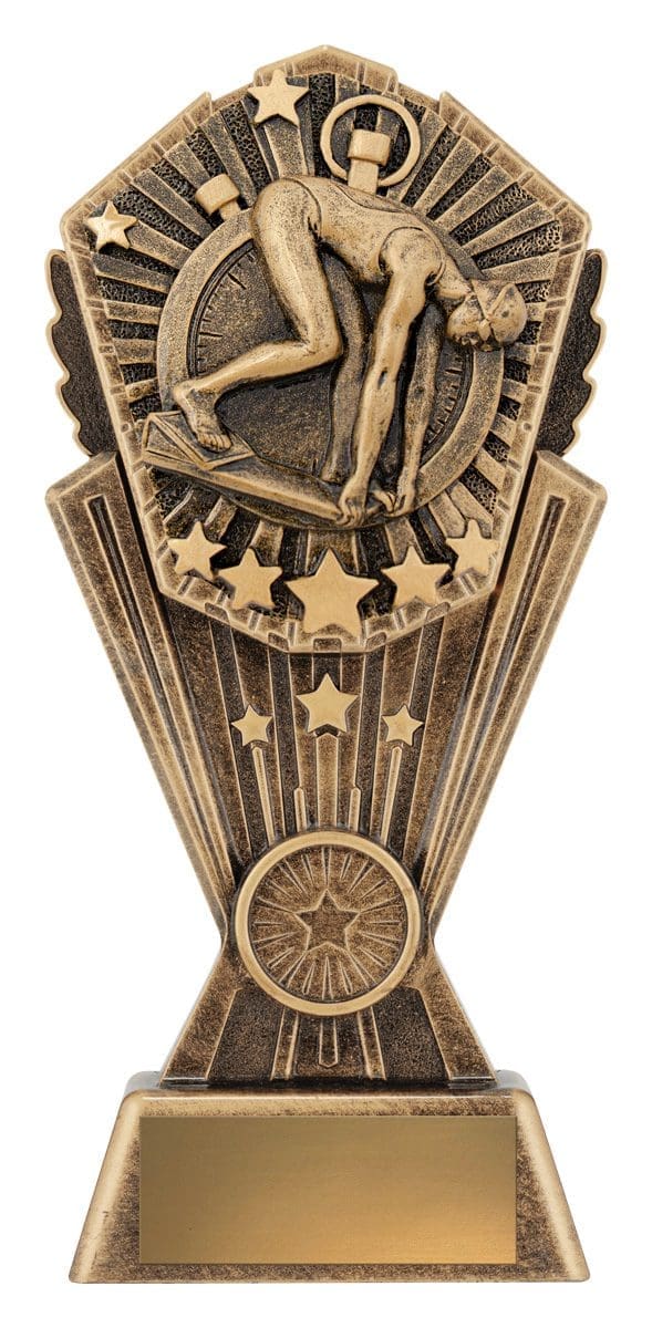 Brilliant ‘Cosmos’ series of female Swimming trophies – available in 3 sizes with space for colour logo.