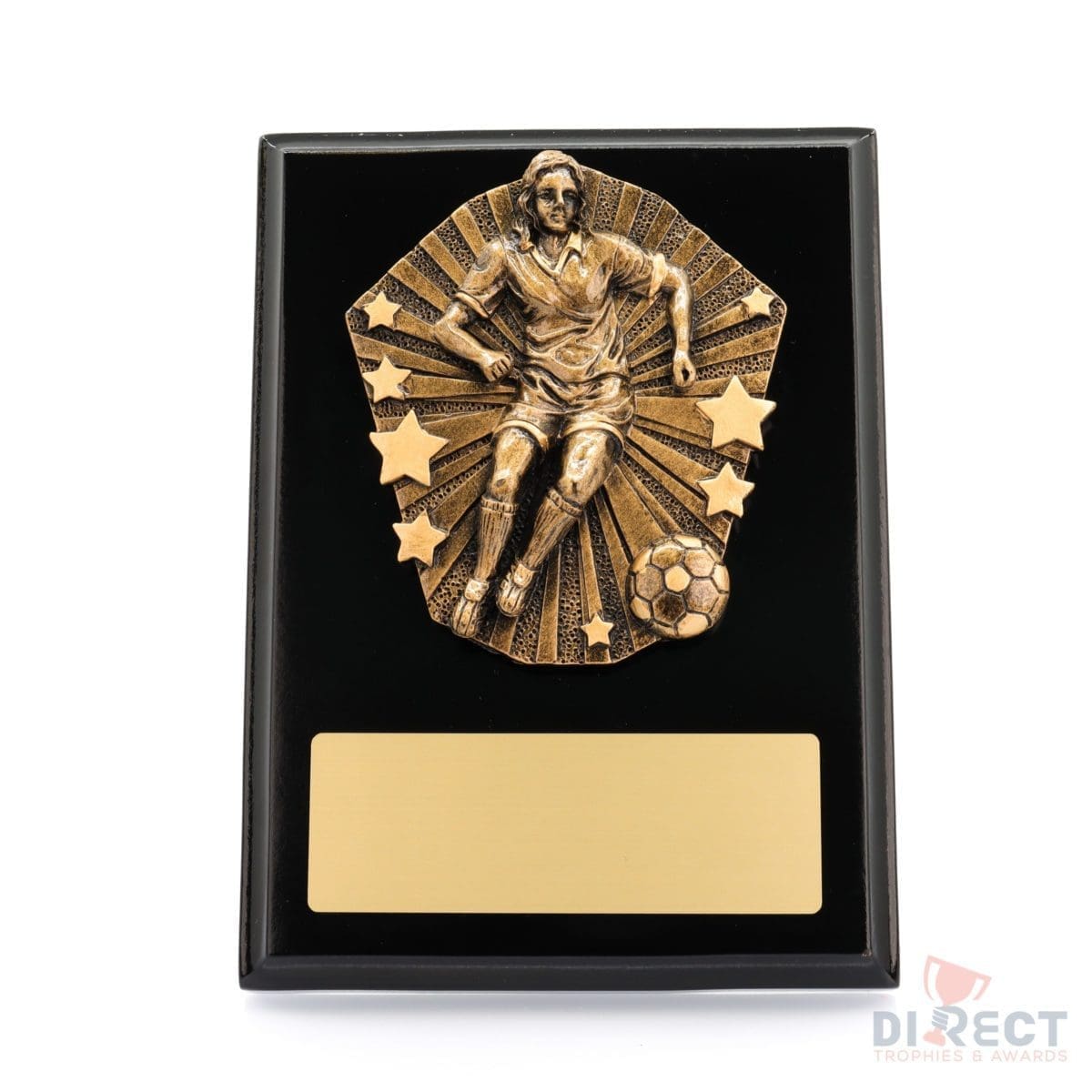 A classic gloss black plaque with brilliant Cosmos front accompanied with a european gold plate showing black text engraving. Plaque includes silver screw on stand for display. Available in 2 sizes.
