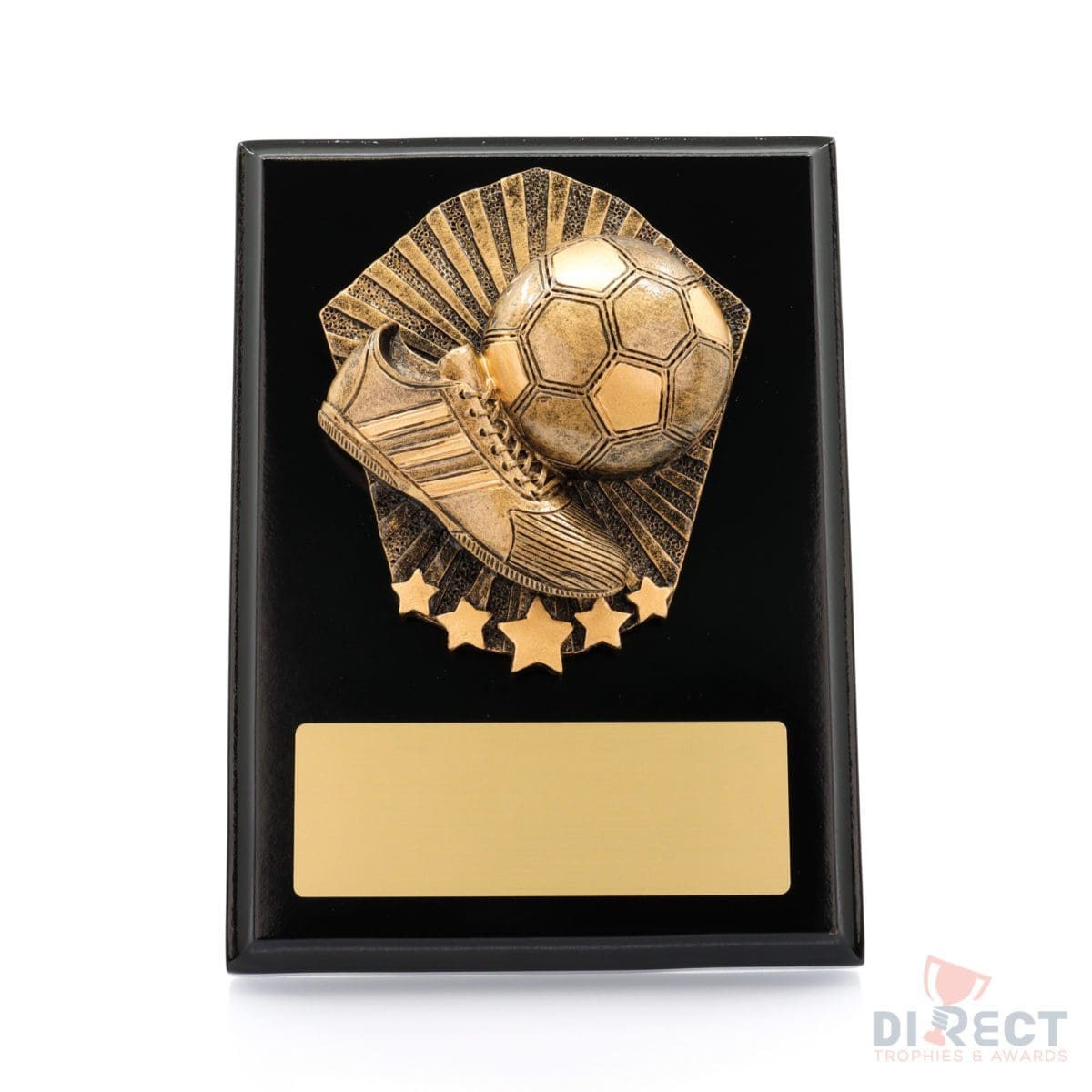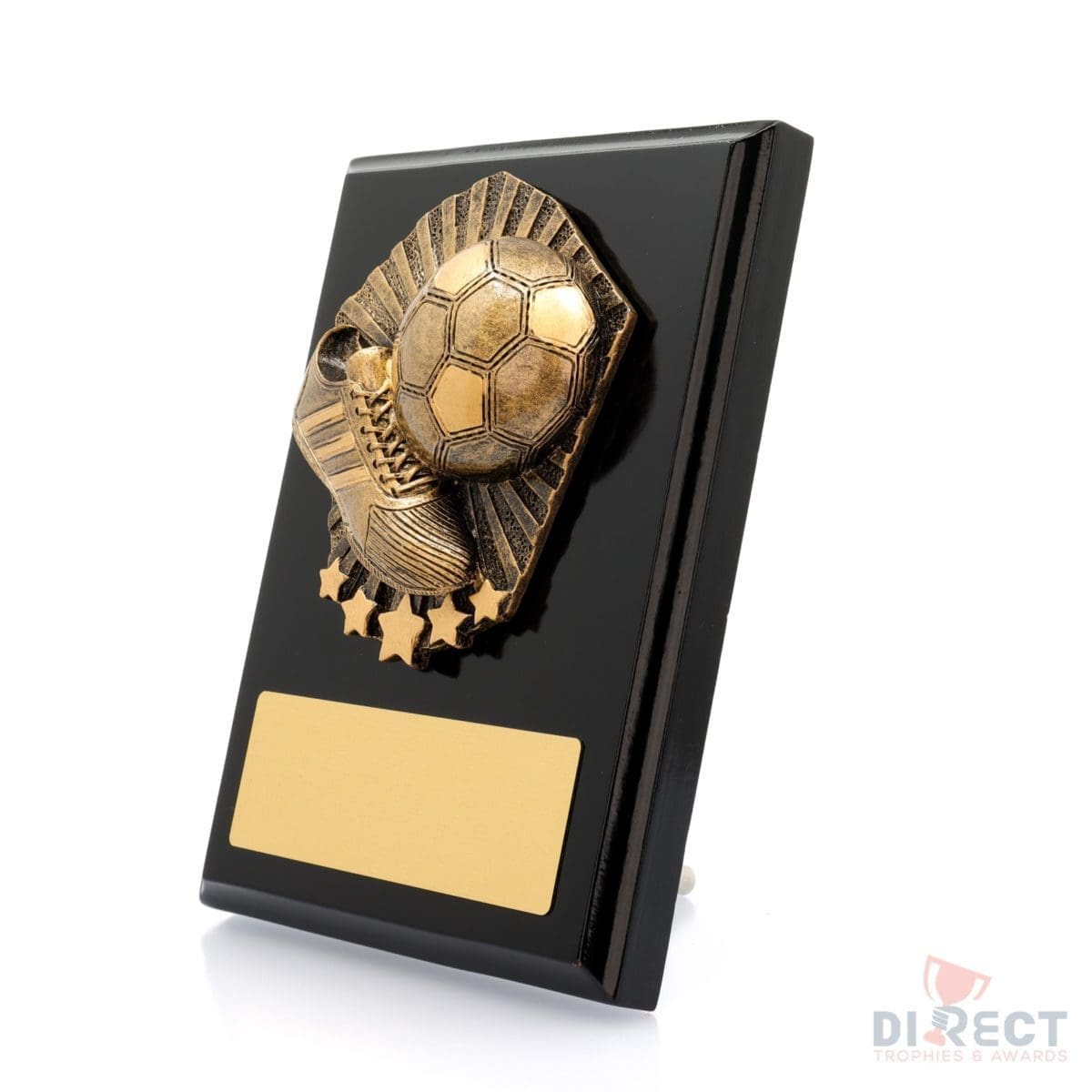 A classic gloss black plaque with brilliant Cosmos front accompanied with a european gold plate showing black text engraving. Plaque includes silver screw on stand for display. Available in 2 sizes.