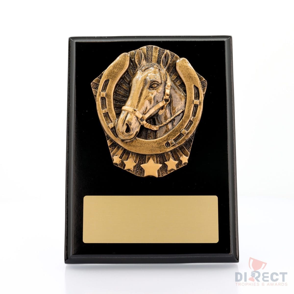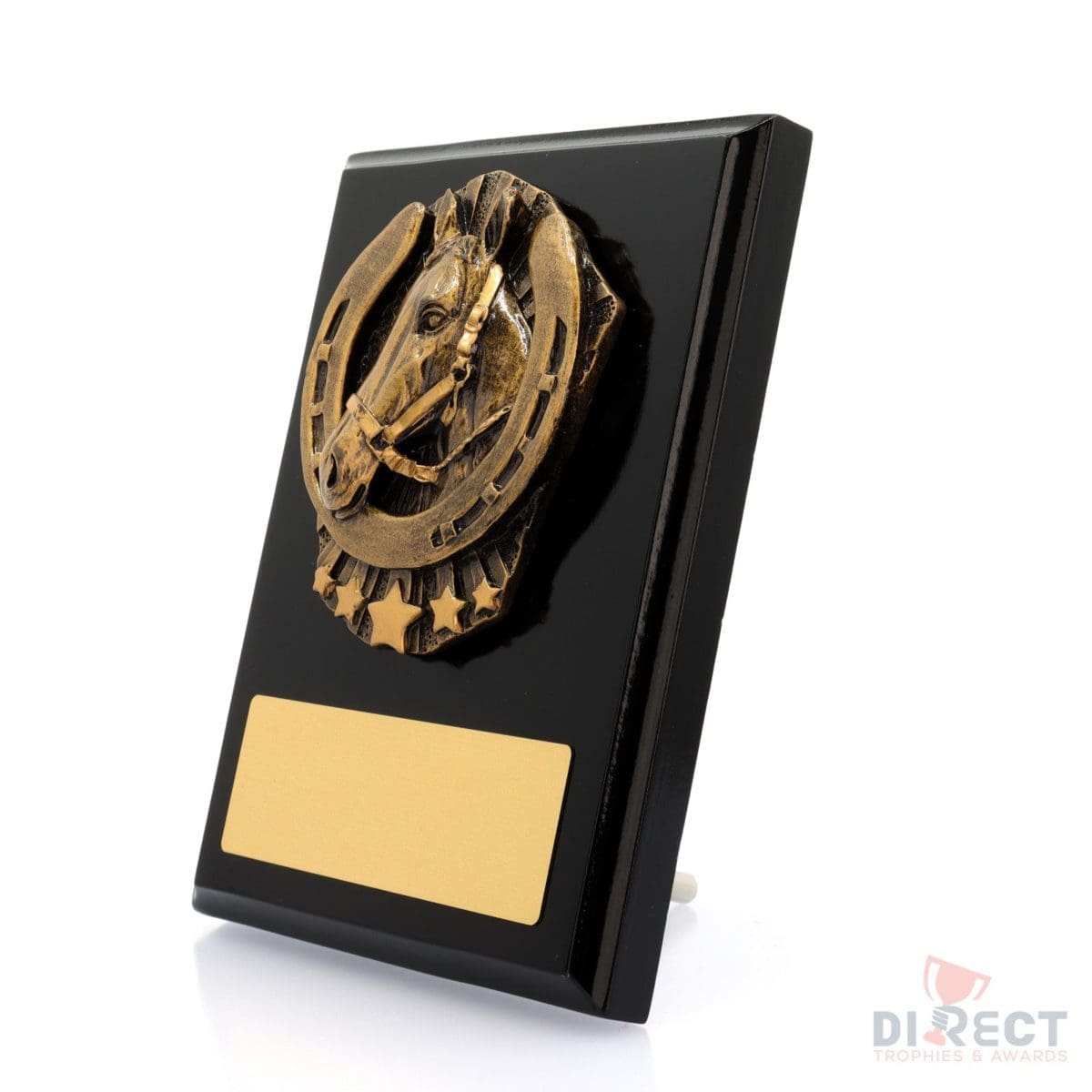 A classic gloss black plaque with brilliant Cosmos front accompanied with a european gold plate showing black text engraving. Plaque includes silver screw on stand for display. Available in 2 sizes.