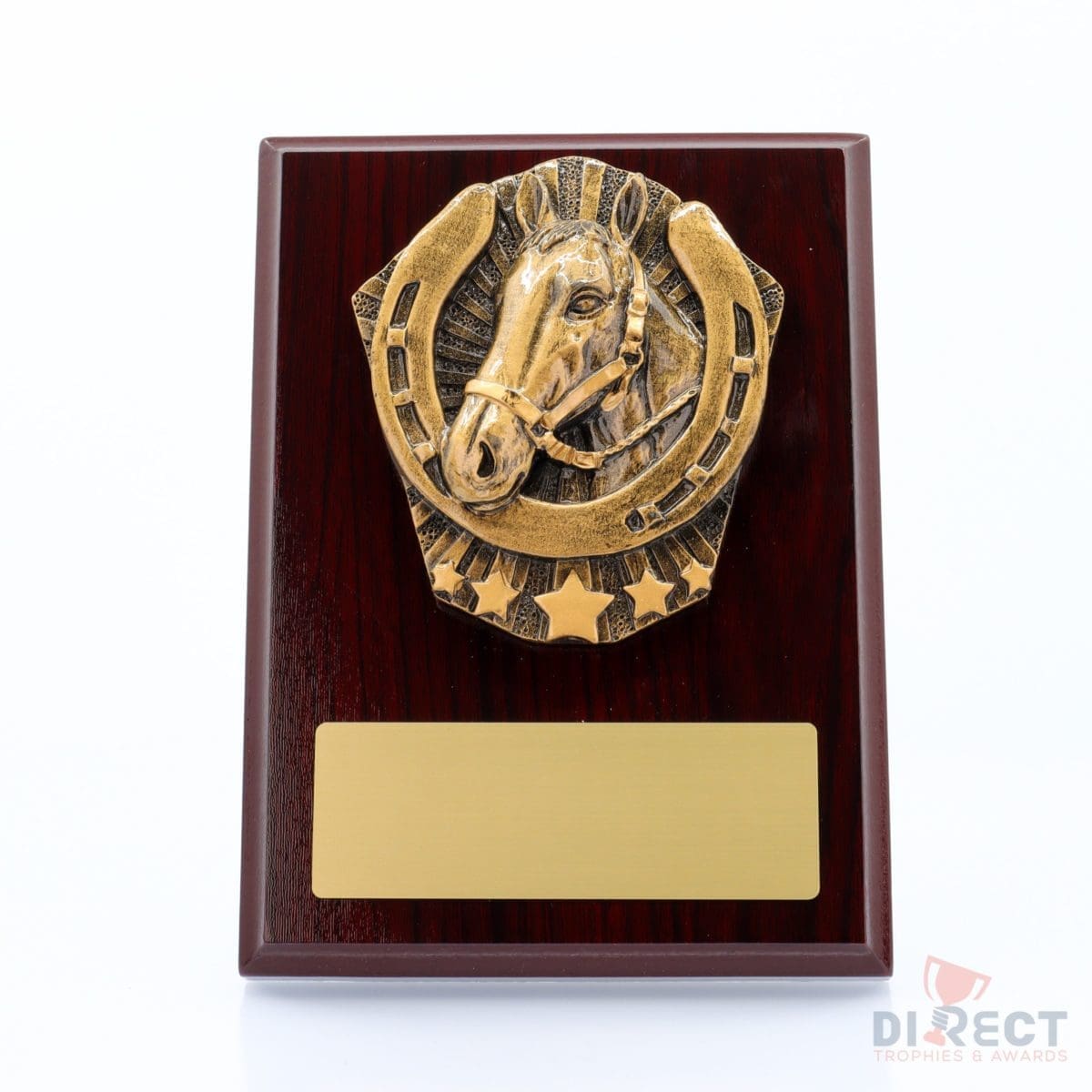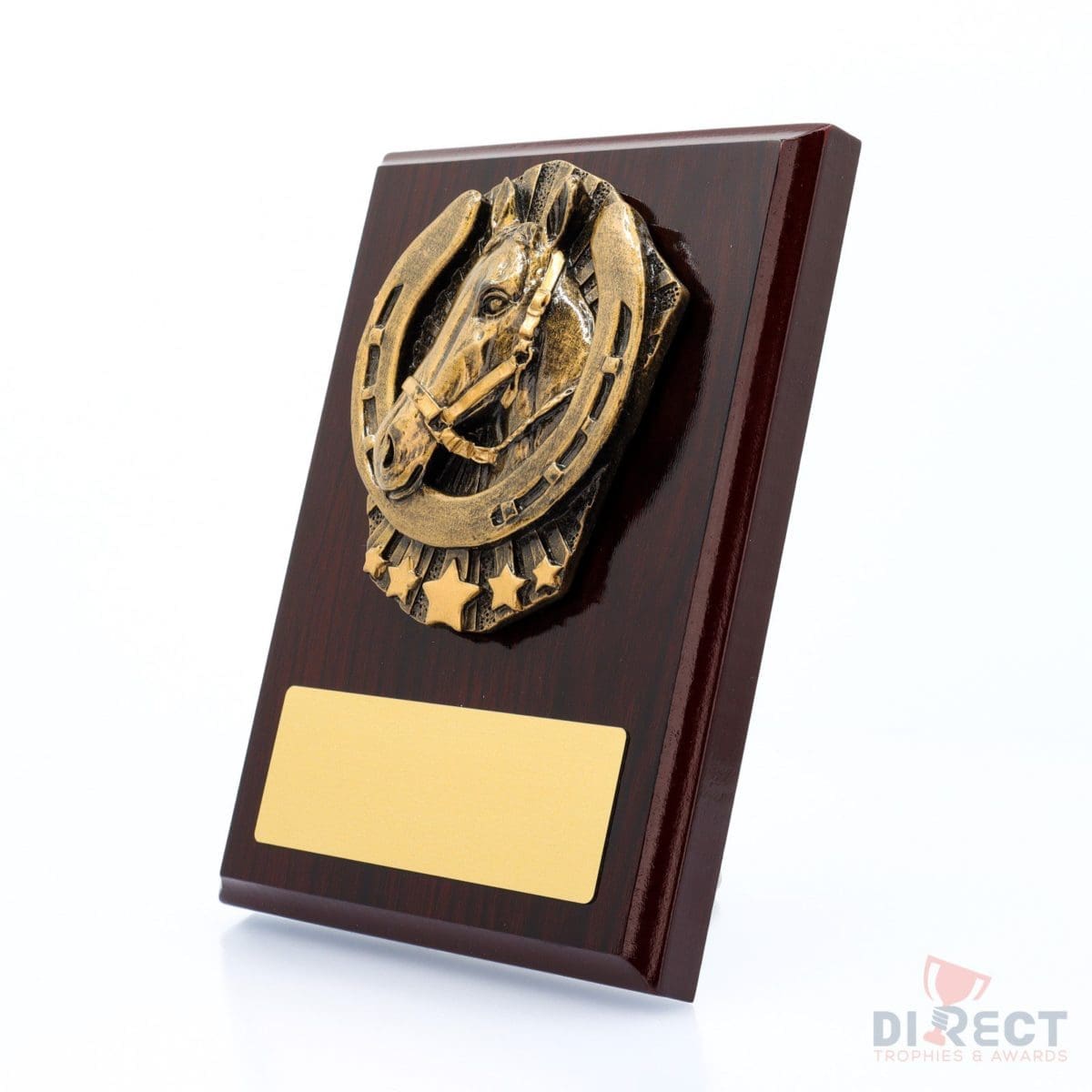 A classic gloss mahogany plaque with brilliant Cosmos front accompanied with a european gold plate showing black text engraving. Plaque includes silver screw on stand for display. Available in 2 sizes.